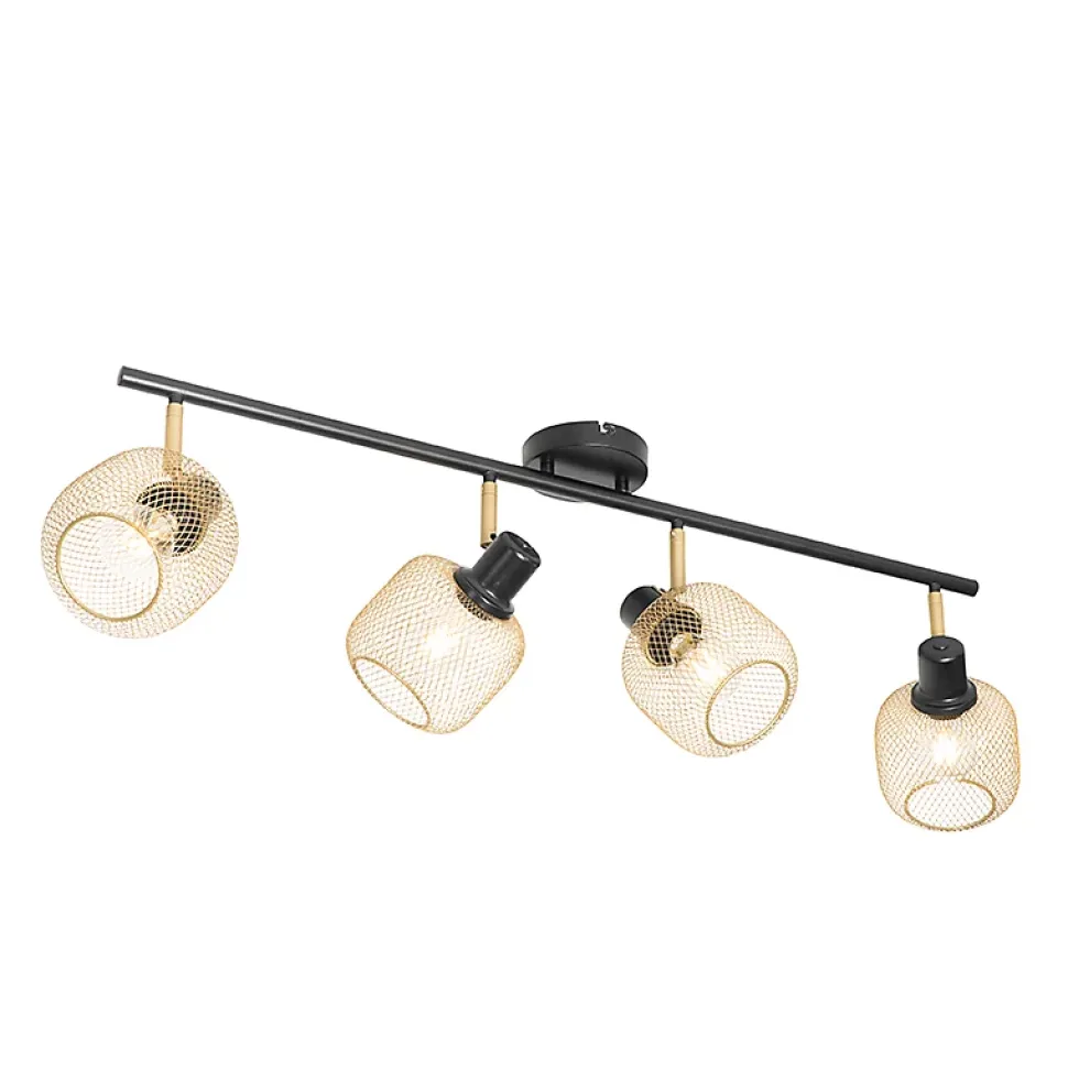 Vous recherchez un spot pour votre salon, salle à manger ou chambre à coucher ? Alors le Bliss Mesh est fait pour vous ! Les quatre spots peuvent être orientés séparément, vous permettant ainsi de choisir où la lumière éclaire. Super pratique ! Le Bliss Mesh est en acier et arbore une finition noire avec des touches dorées. Il mesure 29 cm de haut, 90 cm de long et 18 cm de large. La plaque de montage a un diamètre de 12 cm et une épaisseur de 2,5 cm. Chaque abat-jour doré a un diamètre de 14 cm et une hauteur de 12 cm. Complétez le spot avec 4 ampoules, chacune avec un culot E27 de 40W maximum. N’oubliez pas de les commander séparément. Les spots peuvent être atténués à l’aide d’un variateur externe, qui n’est toutefois pas inclus. Complétez votre intérieur avec le Bliss Mesh.