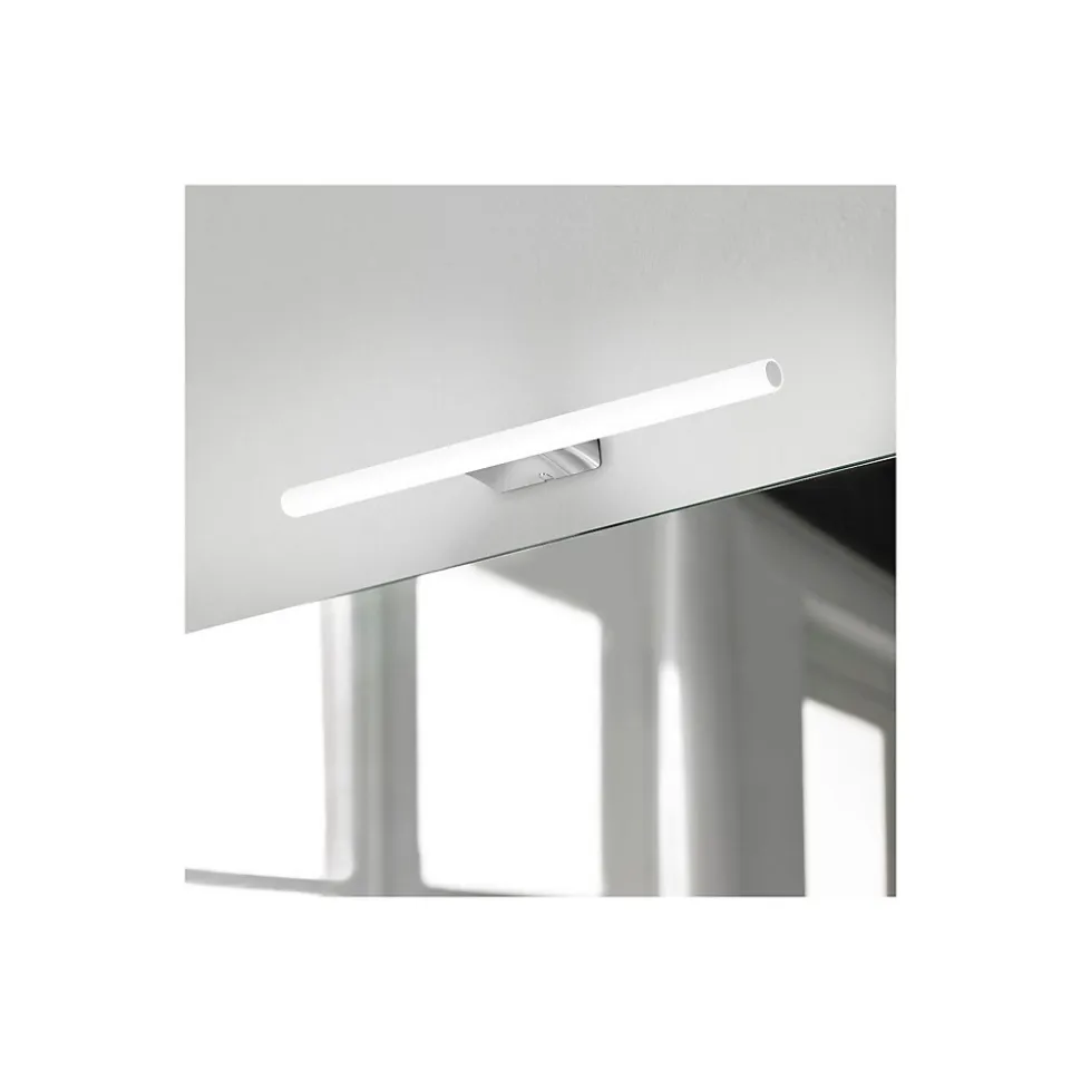 Points forts du produit : Indice de Rendu de couleur (90) Éclairage LED Samsung Protection IP44 Classe électrique II 25 000 heures d’éclairage Fixation au mur Eclairage direct Faible impact environnemental Installation facile Mob-in vous propose le spot LED IRENE, l’accessoire idéal à ajouter à votre miroir pour apporter la luminosité dont vous manquez dans votre salle de bain. Facile et rapide à installer il saura s’adapter à tous style de miroir avec ses lignes élégantes. Mais pas que ! Il pourrait aussi très bien trouver sa place au-dessus d’un dressing ou même d’un beau cadre à mettre en valeur. Il dispose d’une ampoule à économie d’énergie permettant d’éclairer avec un faible impact environnemental. Il possède la technologie LED Samsung qui vous garantit 25 000 heures d’éclairage sans transformateur externe. Cette technologie n’a pas besoin de transformateur externe Informations : Éclairage : 9W – 865 LM Flux lumineux : 5700 K (lumière blanche) Durée de vie LED : 25 000 H Tension nominale : 220 – 240 V / 50/60Hz Faisceau lumineux : 210° Fonctionnalités : Éclairage direct + Sans transformateur Matériaux : corps plastique Diffuseur : Polycarbonate Finition : Chromée Dimensions : Longueur : 50 cm Poids : 0,4 kg Vendeur: Mob-In est une marque imaginée et distribuée par la société Homesight, basée en France près de Lille. Nous sommes spécialisés dans l’univers de la salle de bain & du rangement. Nous mettons beaucoup de cœur à la fabrication de nos produits, afin de vous proposer des modèles originaux, de qualité et au juste prix.