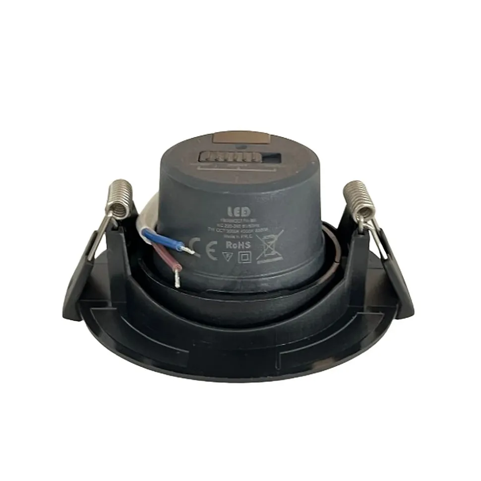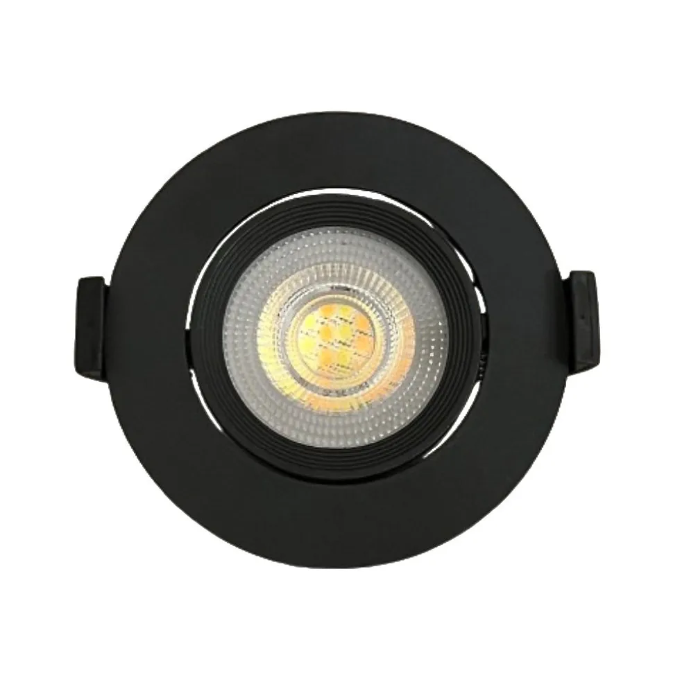 Spot LED encastré inclinable rond 7W. Grâce à son mode CCT, vous pouvez retrouver les trois températures de lumière dans la même ampoule, pour pouvoir changer au besoin (3000K, 4000K ou 6000K), c’est très utile puisque chaque instant et lieu a besoin d’un type de température de lumière.Son angle d’ouverture offre un éclairage d’accentuation avec une efficacité maximale.Forme : RondePuissance : 7 WLumen : 560 lmCouleur du corps : NoirTempérature de couleur : CCT 3000K-4000K-6000KTension : AC220-240VFréquence : 50 HzType de puce : SMD2835Indice IP : IP20 (intérieur)Diffuseur : lentille transparenteAngle d’ouverture : 40ºMatériau : Aluminium + PBT+PCDiamètre du spot : ø90 mm H:40mmDiamètre de perçage : ø70-75 mmDimmable : NonClasse énergétique: fConforme aux certificats CE et RoHsGarantie de 2 ans.