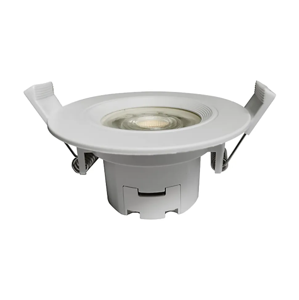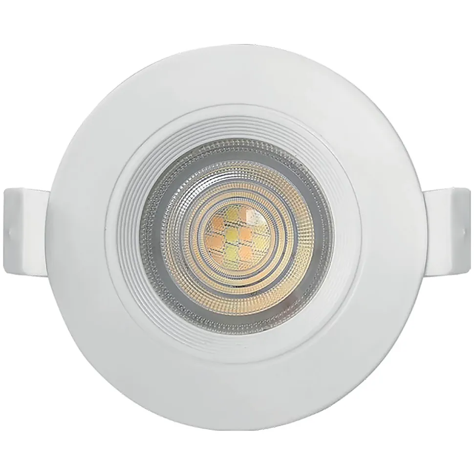 Le spot LED encastrable 3en1 blanc 7W IP54 à pour particularité son interrupteur de couleur au dos du mécanisme, qui permet de changer sa couleur de température kelvin (3000K, 4000K, 6500K). C’est pour cela qu’il convient parfaitement pour l’éclairage général de la maison. Mais aussi pour les locaux commerciaux comme les restaurants, hôtels, boutiques, etc.. Avec son driver intégré et ses ressorts de fixation, le spot LED encastrable 3en1 blanc 7W IP54 à une installation simple et rapide. Son efficacité énergétique et sa longue durée de vie permettent plus de 80% d’économie d’énergie, par rapport aux éclairages traditionnels incandescents ou halogènes. Son indice de rendu des couleurs (IRC) est élevé Ra⩾80. De plus il n’émet pas de radiation UV ni infrarouge. Ce spot dispose d’un interrupteur de couleur Kelvin permettant de choisir entre 3 températures de couleurs. Le blanc chaud 3000K ambiance convivial et cosy, le blanc naturel 4000K qui se rapproche le plus à la lumière du jour et le blanc froid 6500K qui est énergisant et convient donc pour la concentration. Sa puissance de 7W avec 560lm équivaut à la puissance d’une ampoule incandescente de plus de 50W. L’angle de diffusion est de 38° ce qui est considéré comme moyen. Concernant sa matière, il est en polycarbonate (PC), qui est un thermoplastique connu pour ses propriétés mécaniques excellentes entre -80° et + 135 °C. Le produit est donc recyclable. Avec une durée de vie de 20000hrs, ce produit est durable et économique. Ses dimensions sont les suivantes, Hauteur 40mm, diamètre 85mm et diamètre de découpe 70mm. L’indice de protection IP54 assure que le produit est : Protégé contre les dépôts de poussières Protégé contre les projections d’eau En conséquence, les produits dotés d’un indice de protection