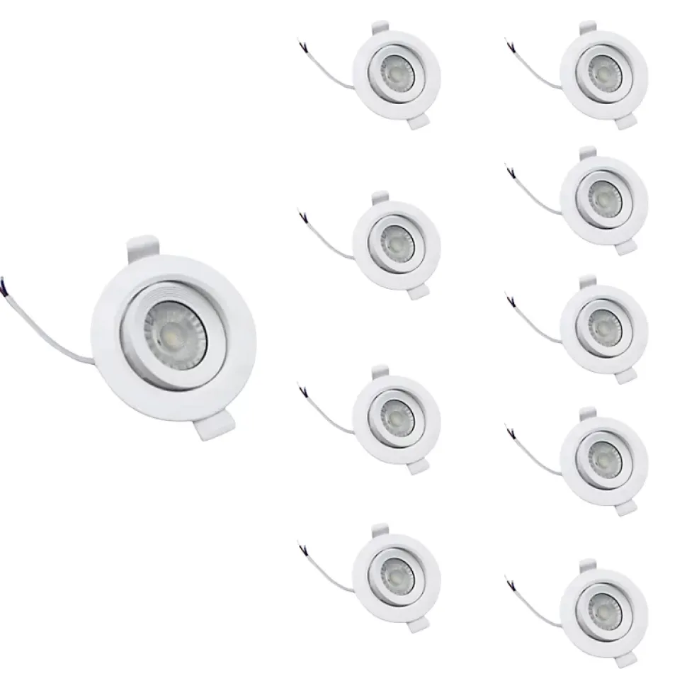 Spot LED encastrable 5W CCT orientable 38° (Pack de 10), la solution de relamping en faux-plafond pour standardiser une seule référence (3 teintes) et réduire la puissance installée sur chantiers multi-points.Confort visuel & éclairage d’accent avec le Spot LED encastrable 5W CCT (38° orientable)Avec 400 lm et un faisceau 38°, ce spot LED encastrable concentre la lumière sur les zones utiles (tableaux, niches, circulation) tout en restant précis grâce à sa tête orientable. Le CCT réglable 3000K / 4000K / 6000K permet d’adapter l’ambiance au local sans changer de référence, tout en gardant un rendu cohérent Ra80.Rénovation express & pose en série : Spot encastrable rond Ø9 cm (perçage 8 cm, 230V)Alimentation directe 220-240V / 50-60Hz : câblage simplifié, idéal pour avancer vite en relamping. Le gabarit est optimisé pour la rénovation (diamètre d’encastrement 8 cm, spot Ø9 cm, faible épaisseur 2,35 cm) et le pack de 10 permet une pose homogène et répétable, notamment en spot pour dressing lorsque l’on veut ajuster la teinte au rendu final sans multiplier les références.Performance & ROI : 5W, 400 lm (≈80 lm/W) – optimisation en pack x10À 5W pour 400 lm (≈80 lm/W), vous obtenez un éclairage d’accent efficace avec une consommation maîtrisée. En pack, vous totalisez 50W installés pour ≈4000 lm cumulés : un ratio intéressant pour standardiser des trames (même perçage, même optique, même réglage CCT) et réduire les coûts de main-d’œuvre lors des déploiements.Durabilité & sécurité : IP20, Classe II, ~25 000 h (maintenance réduite)Prévu pour l’intérieur sec (IP20), ce spot est en Classe II (double isolation) et annoncé pour ~25 000 h, avec garantie 2 ans et fonctionnement -10°C à +40°C.⚠️ Sécurité 220V : intervention hors tension obligatoire, connexions correctement serrées/isolées ; et sur alim