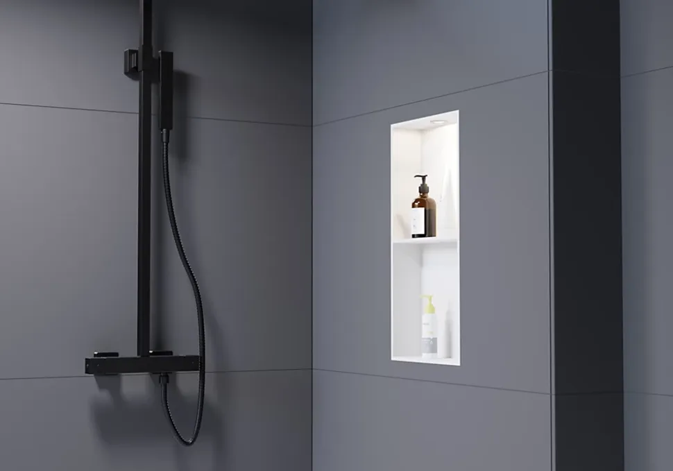 Spot encastrable LED Ø 45 mm – couleur de lumière blanc neutre – convient pour l’éclairage de niches murales ou d’autres espaces de vieUn spot LED encastrable offre un éclairage agréable qui illumine votre espace de vie de manière confortable et discrète. Ce spot LED est particulièrement adapté aux niches murales de la salle de bains. Le produit est équipé de l’indice de protection IP65 contre les jets d’eau et éclaire dans la couleur de lumière blanc neutre. Ce luminaire encastré peut également être utilisé dans d’autres espaces de vie.La couleur du cadre de montage peut-être commandée dans une couleur assortie à votre salle de bain.Veuillez sélectionner la variante souhaitée en haut de la page au début de l’offre. Nous vous recommandons de faire réaliser l’installation par un professionnel.Détails du produit Couleur du cadre de montage chrome, noir RAL 9005, blanc RAL 9003 Matière Aluminium Dimensions Ø 45×22,3 mm Profondeur d’encastrement 22 mm Dimension du trou Ø 40 mm Consommation 3 W Tension d’alimentation 220-240 V | 50/60 Hz Tension de sortie 9 V Courant 300 mA Couleur de lumière 4000 K, blanc neutre Flux lumineux/luminosité 280 lm Indice de rendu des couleurs (IRC) >90 Angle de rayonnement 36° Classe de protection IP65 protection contre les jets d’eau Classe d’efficacité énergétique G Détails supplémentaires Certifié CE, RoHS
