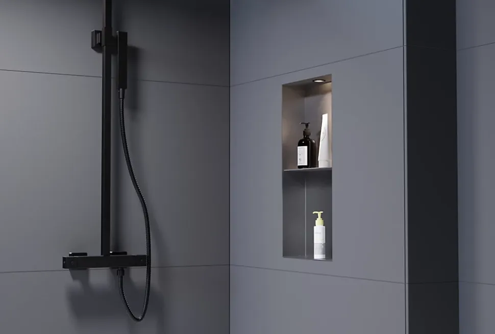Spot encastrable LED Ø 45 mm – couleur de lumière blanc neutre – convient pour l’éclairage de niches murales ou d’autres espaces de vieUn spot LED encastrable offre un éclairage agréable qui illumine votre espace de vie de manière confortable et discrète. Ce spot LED est particulièrement adapté aux niches murales de la salle de bains. Le produit est équipé de l’indice de protection IP65 contre les jets d’eau et éclaire dans la couleur de lumière blanc neutre. Ce luminaire encastré peut également être utilisé dans d’autres espaces de vie.La couleur du cadre de montage peut-être commandée dans une couleur assortie à votre salle de bain.Veuillez sélectionner la variante souhaitée en haut de la page au début de l’offre. Nous vous recommandons de faire réaliser l’installation par un professionnel.Détails du produit Couleur du cadre de montage chrome, noir RAL 9005, blanc RAL 9003 Matière Aluminium Dimensions Ø 45×22,3 mm Profondeur d’encastrement 22 mm Dimension du trou Ø 40 mm Consommation 3 W Tension d’alimentation 220-240 V | 50/60 Hz Tension de sortie 9 V Courant 300 mA Couleur de lumière 4000 K, blanc neutre Flux lumineux/luminosité 280 lm Indice de rendu des couleurs (IRC) >90 Angle de rayonnement 36° Classe de protection IP65 protection contre les jets d’eau Classe d’efficacité énergétique G Détails supplémentaires Certifié CE, RoHS