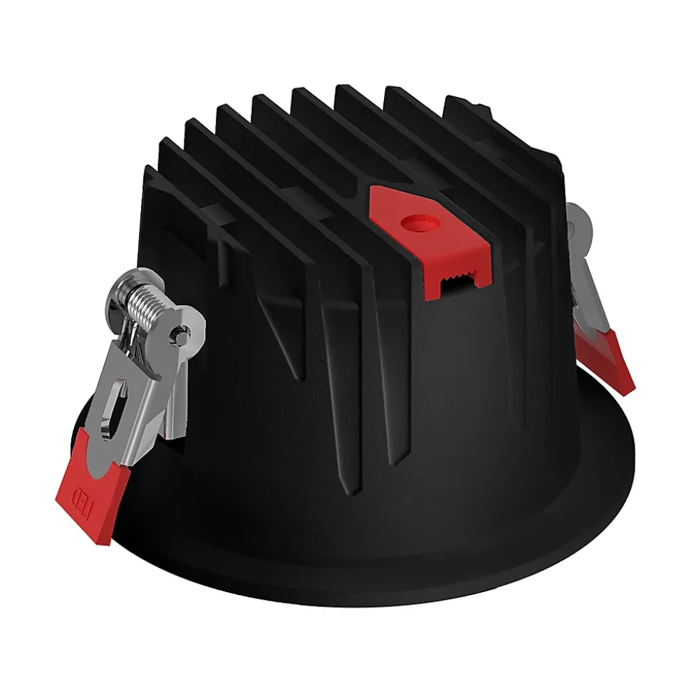 Offrez une touche d’élégance avec ce spot LED encastrable Braytron noir de 20W. Son design moderne, avec des finitions entièrement noires et des clips rouges robustes, en fait un choix idéal pour les intérieurs contemporains. Polyvalent grâce à sa température de couleur réglable (3000K, 4000K, 6500K), il s’adapte parfaitement aux différentes ambiances. Son angle d’éclairage de 36° permet une mise en lumière précise et ciblée. Caractéristiques techniques Type : Spot LED encastrable Puissance : 20W Luminosité : 2200 lumens Température de couleur : 3000K, 4000K, 6500K (réglable 3-en-1) Indice de protection : IP20 (usage intérieur uniquement) Angle d’éclairage : 36° Classe énergétique : E Classe de protection : II Matériau : Aluminium durable pour une meilleure dissipation thermique Finition : Noir mat Dimensions : Diamètre 110 mm, Hauteur 70 mm Diamètre de coupe au plafond : 95 mm Durée de vie : 20 000 heures Non dimmable : Éclairage constant sans variation Avantages Puissance efficace : Profitez d’un éclairage performant de 2200 lumens pour seulement 20W. Design contemporain : Sa finition noir mat apporte une touche chic et élégante à votre intérieur. Polyvalence lumineuse : Ajustez facilement la température de couleur pour une lumière adaptée à toutes vos pièces.