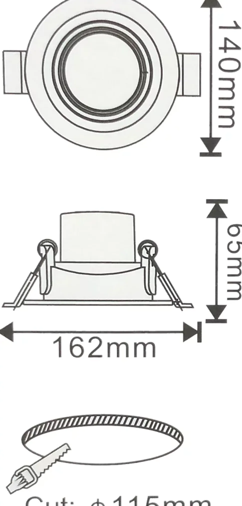 PAS DIMMABLETempérature de couleur : Blanc Chaud 3000KPuissance consommée : 15WFlux lumineux : 1200 LumensDiamètre du spot : ø140xH65 mmDiamètre de perçage : ø115 mmCouleur du produit (y compris le cadre) : BlancIndice de protection : IP 20Garantie fabricant : 2 ans