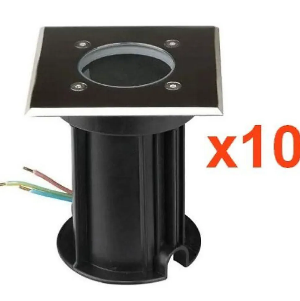 [Spot LED Extérieur Encastrable Carré IP65 pour Ampoule GU10 (Pack de 10)] lluminez votre terrasse avec le Spot LED Extérieur Encastrable Carré IP65 pour Ampoule GU10 (Pack de 10), totalement adapté aux espaces extérieurs.[Utilisation] Faites le choix de ce spot encastrable pour réaliser tous vos projets. Installez le autour de votre porche d’entrée pour le sécuriser, ou le long de l’allée de jardin ou d’un escalier pour baliser ces zones.[Installation] Le diamètre d’encastrement de 90mm de ce spot extérieur LED lui permet d’être encastré directement au sol sans gêner le passage. Vous pouvez l’installer dans de multiples surfaces : bois, béton, gravier ou encore terre, et le piétiner sans problème, de quoi vous laisser le choix d’une installation dans le jardin ou sur la terrasse.[Une installation en extérieur] Une installation en extérieur n’est pas un problème avec ce spot encastrable extérieur car il est doté d’un indice de protection IP65 qui lui fournit une grande étanchéité même dans les zones les plus exposées à l’humidité, comme au bord d’une piscine.[ATTENTION] Ampoule et boite étanche pour branchement en extérieur non fournies.- [Spot LED Extérieur Encastrable Carré IP65 pour Ampoule GU10 (Pack de 10)] lluminez votre terrasse avec le Spot LED Extérieur Encastrable Carré IP65 pour Ampoule GU10 (Pack de 10), totalement adapté aux espaces extérieurs.