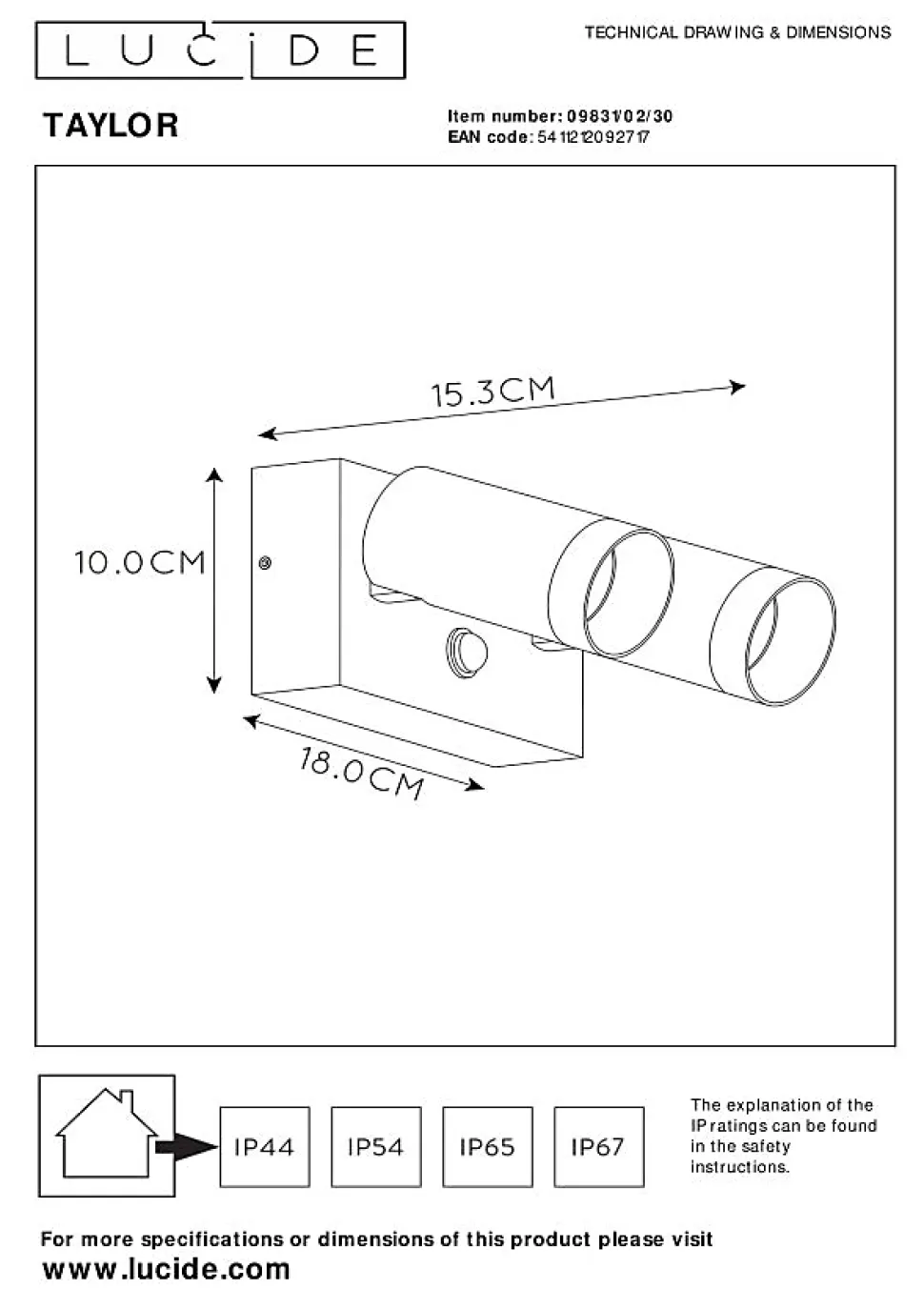 À l’extérieur aussi, vous souhaitez pouvoir compter sur un design élégant, des gadgets techniques et une qualité fiable. Taylor réunit ces propriétés dans un design moderne et intemporel. Ce spot mural en aluminium de haute qualité avec deux ampoules pourra rapidement être fixé sur une façade. Les matériaux ont été soigneusement choisis pour une utilisation extérieure fiable et à long terme. Vous pourrez faire pivoter et incliner les deux sources lumineuses jusqu’à ce qu’elles soient dans la bonne position. Grâce au capteur de mouvement subtilement intégré, Taylor est également très économique et ne révèlera ses secrets qu’en cas de besoin.Caractéristiques uniques:• Utilisable avec des sources lumineuses LED• Cette lampe est rotative et inclinable• Equipé d’un capteur de mouvement• Fabriqué en aluminiumPrincipales caractéristiques du produit:• Dessiné spécialement pour une utilisation fiable et de longue durée à l’extérieur (IP54)• Consommation énergétique: 2x50W / 230V / Sans intensité variable (Ampoules non incluses)• Dimensions: Lon.18 x Larg.10 x Haut.15,3 cm• 2 Ans garantie sur le luminaire / source de lumière appropriée est EAN: 5411212490643Pourquoi choisir l’éclairage Lucide?Lucide incarne un design innovant, un savoir-faire artisanal et une fiabilité exemplaire. En tant qu’entreprise familiale belge avec plus de trois décennies d’expertise, nous concevons des éclairages de haute qualité qui enrichissent et transforment chaque espace, tant intérieur qu’extérieur. Notre collection polyvalente comprend des luminaires durables et des sources lumineuses économes en énergie, soigneusement conçus par nos propres experts et fabriqués selon les normes CE les plus strictes. Grâce à notre large gamme, nous vous proposons toujours une solution d’éclairage adaptée, quel que soit le style ou l’espace. Ainsi, nous illuminons non seulement votre espace de vie mais aussi votre processus d…