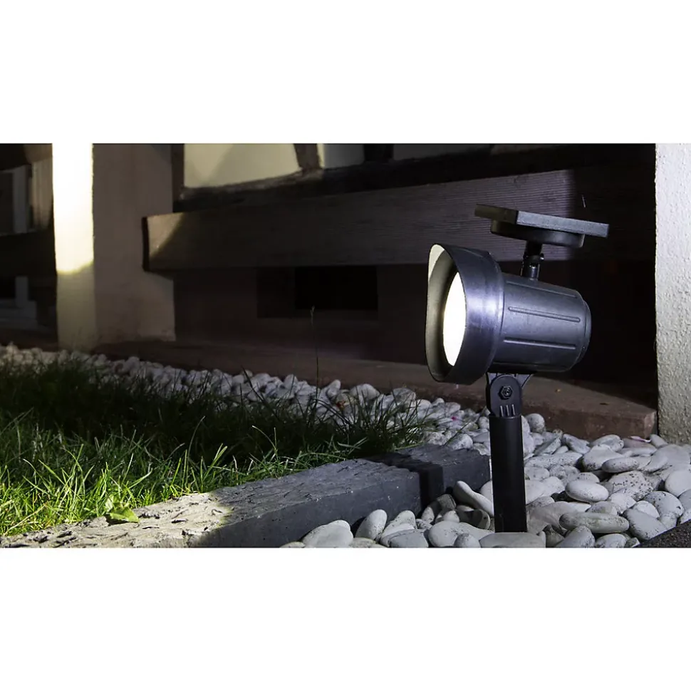 Spot à énergie solaire très éclairantMatière : plastiqueNombre de Lumens : 45Durée maximum d’éclairage : 8 heuresInterrupteur on/off LED : 1 LED SMD blanche – 0,5WBatteries rechargeables : 2 x 600mAh Ni-Mh AADimensions produits : (voir le schéma technique parmi les images)H : 425 / 315 mm – largeur : 110 mm – profondeur : 130 mm