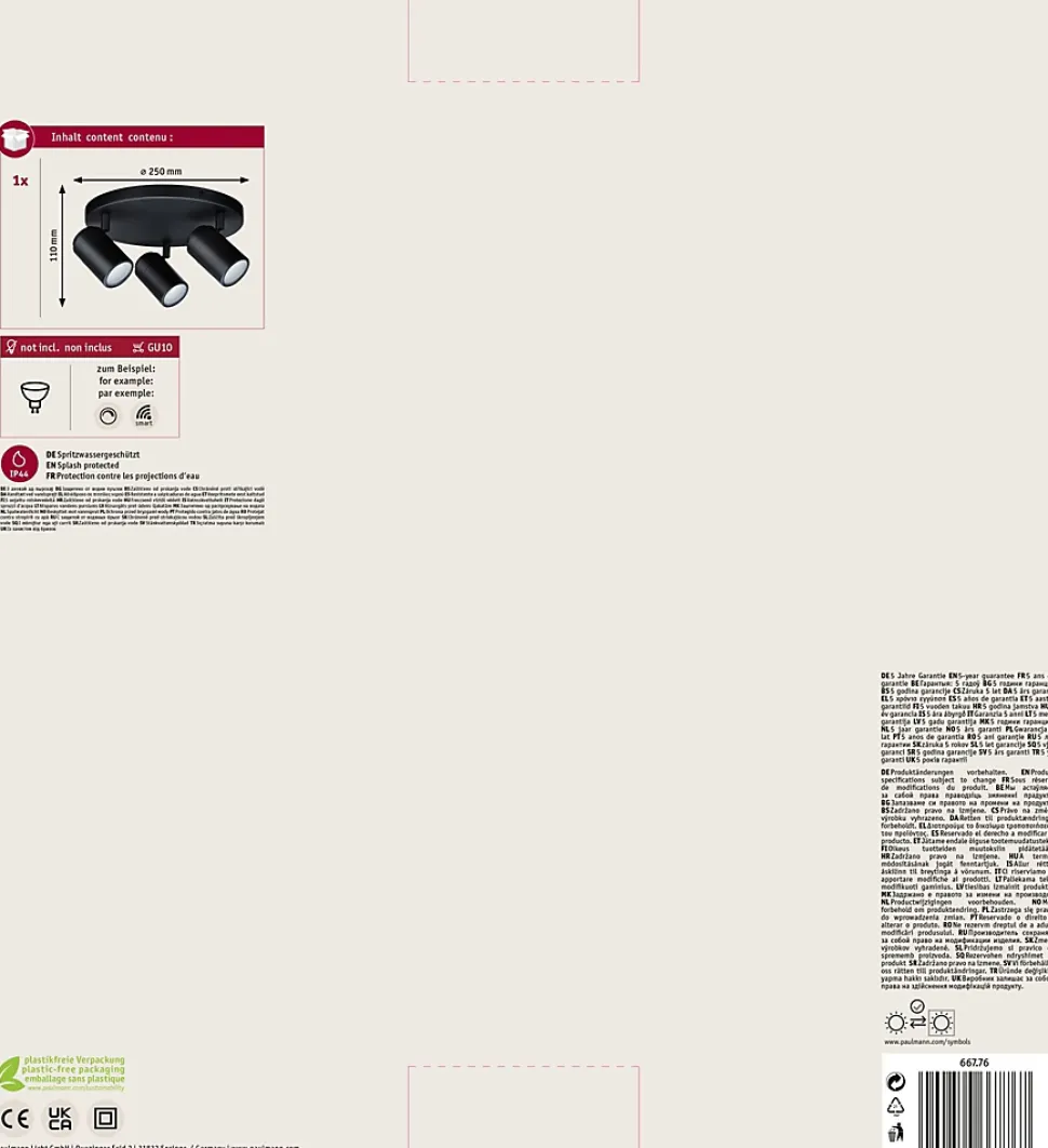 Avec son design sobre, le spot à trois flammes de la série Zyli en Noir mat s’intègre parfaitement comme plafonnier dans tous les intérieurs. Grâce à la protection anti-projections d’eau, le montage dans des pièces humides ne pose aucun problème. L’ampoule est au choix. Les réflecteurs à culot GU10 d’une puissance jusqu’à 10 watts conviennent parfaitement. Un ciblage facile en fonction de vos besoins de lumière grâce à des têtes de spot orientables. Selon l’ampoule utilisée, la lampe est dimmable.