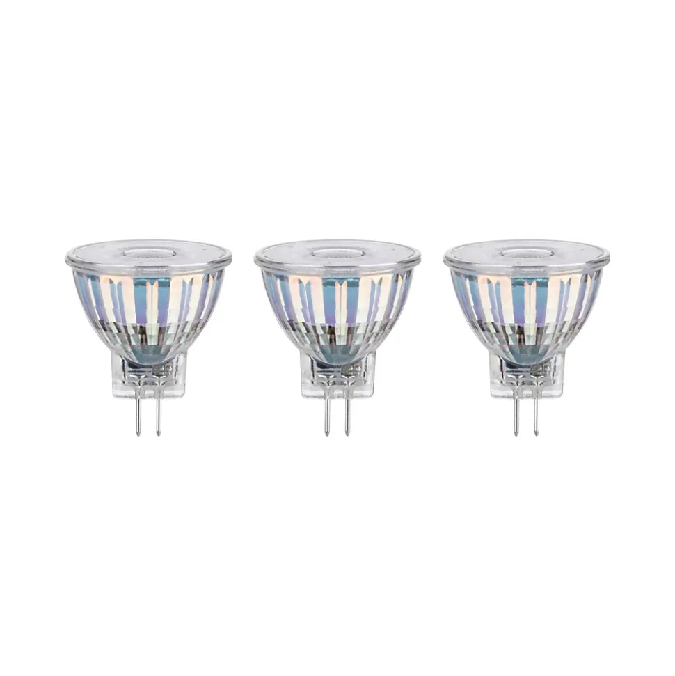 Les réflecteurs verre LED (lot de 3) avec 2700K, une puissance de 3×4,2W et 3x345lm fournissent une lumière dirigée à partir des luminaires en suspension, spots et projecteurs. Les ampoules sont compatibles avec les douilles GU4 conventionnelles. Ces luminaires diffusent la lumière uniquement vers l’avant et mettent en valeur la décoration ou les murs entiers par un éclairage ciblé. Les lampes LED Paulmann portant le label Eye friendly produisent une lumière confortable qui préserve les yeux. Que ce soit pour travailler, lire ou se détendre, les lampes contribuent à un meilleur confort visuel.