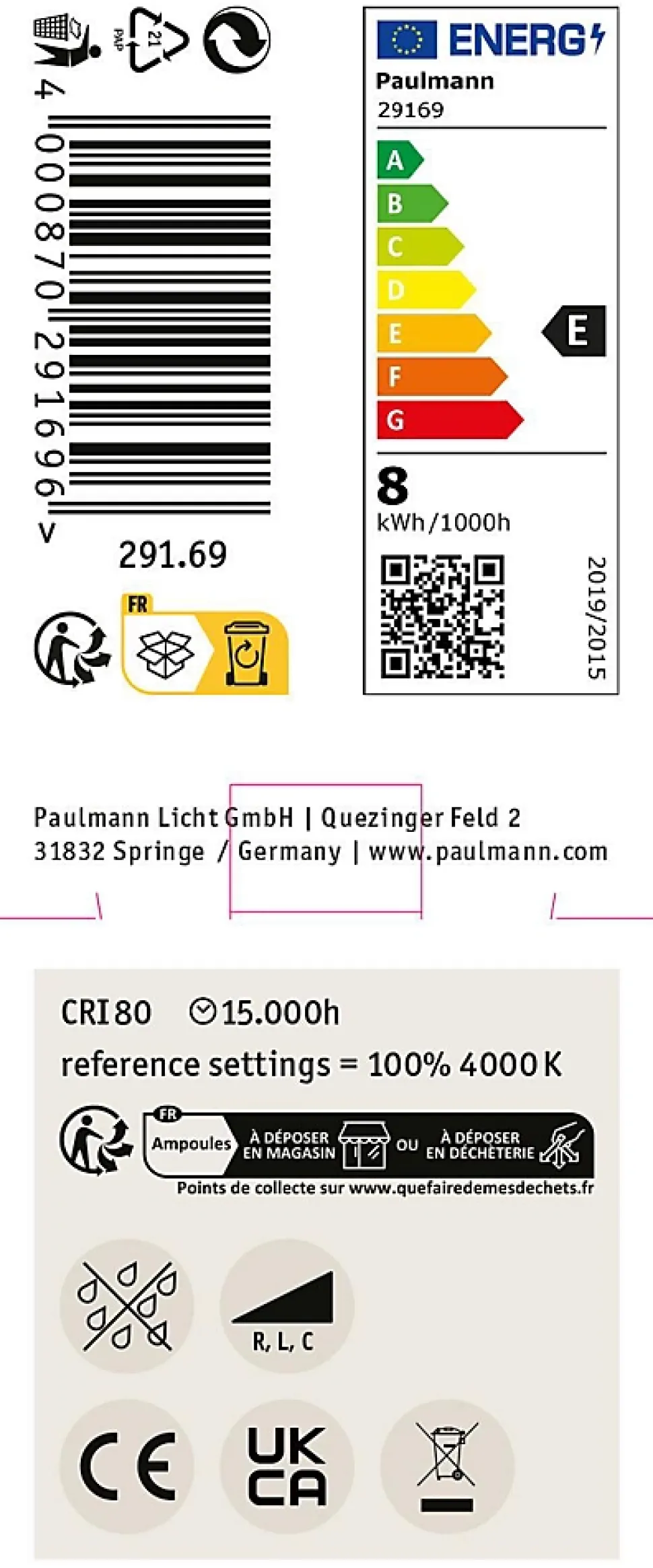 Le réflecteur produit une lumière uniforme agréable qui se distingue par son 4000K. Avec une puissance de 8W et un affichage du flux lumineux de 750lm, il offre une solution d’éclairage optimale. Le réflecteur GU10 est disponible dans le coloris Chrome mat et s’accorde parfaitement avec les couleurs de matériaux RAL du système URail. Il convient parfaitement pour une utilisation sans les spots URail équipés d’une douille GU10. Grâce à sa fonction de variation d’intensité, l’utilisateur peut adapter la luminosité de l’ampoule selon ses besoins personnels, que ce soit pour un éclairage d’ambiance agréable ou pour un éclairage total de la pièce. Les réflecteurs sont spécialement conçus pour produire une lumière dirigée depuis les luminaires en suspension, les spots et les projecteurs. L’éclairage ciblé intervient notamment pour la mise en valeur des tableaux, des éléments de décoration ou de grandes surfaces murales. En résumé, ces réflecteurs ne proposent pas uniquement une lumière de haute qualité avec une luminosité optimale, ils permettent de plus de varier l’ambiance des pièces avec une mise en valeur ciblée. Les lampes LED Paulmann portant le label Eye friendly produisent une lumière confortable qui préserve les yeux. Que ce soit pour travailler, lire ou se détendre, les lampes contribuent à un meilleur confort visuel.