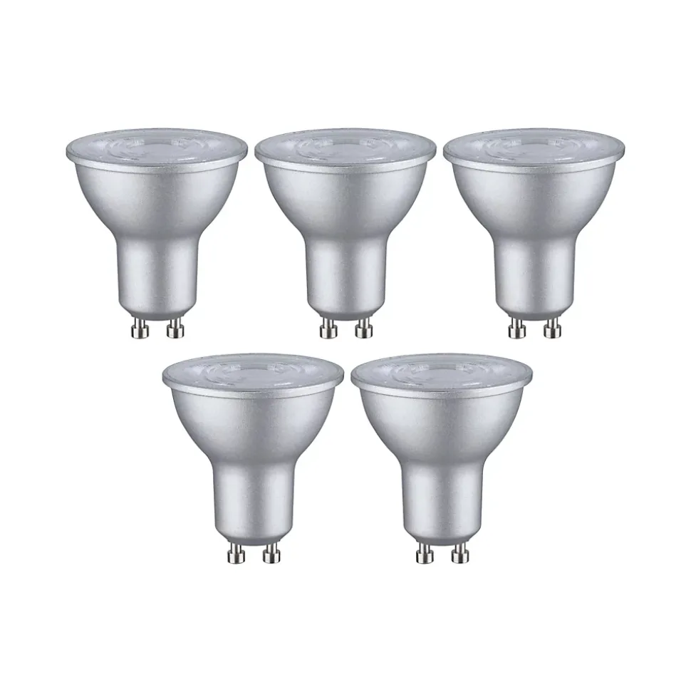 Les réflecteurs fournissent une lumière dirigée pour les projecteurs, spots et encastrés Un cône de lumière claire de 460 lm incliné à 38° vous permet de mettre en valeur votre déco ou des objets spécifiques de votre intérieur. Avec le pack multiple (5×4, 9 W), vous pouvez vous équiper en technologie LED efficace de manière économique et même vous approvisionner en vue de futurs travaux. Les ampoules ont une température de couleur agréable et sont compatibles avec les douilles GU10 conventionnelles. Les ampoules LED Paulmann portant le label Eye friendly produisent une lumière confortable qui préserve les yeux. Que ce soit pour travailler, lire ou se détendre, les ampoules contribuent à un meilleur confort visuel. Le réflecteur GU10 est disponible dans le coloris Blanc Chrome mat et s’accorde parfaitement avec les couleurs de matériaux RAL du système URail.