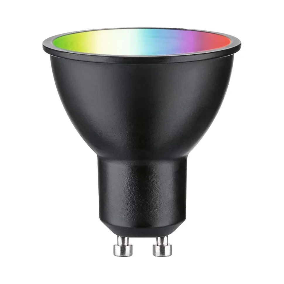 Le réflecteur LED en Noir mat avec RGBW+, une puissance de 4,8W et 350lm crée une lumière uniforme agréable. L’ampoule est compatible avec les douilles conventionnelles GU10 et convient notamment pour les systèmes rails et câbles. L’ampoule est compatible Zigbee 3.0 3.0. ZigBee est un protocole de transmission radio qui met en réseau les appareils de différents fabricants. Selon l’ambiance désirée, vous pouvez choisir entre un blanc chaud véritable, une lumière colorée et d’autres effets différents. Les réflecteurs fournissent une lumière dirigée dans les luminaires en suspension, les spots et les projecteurs. Ils diffusent la lumière uniquement vers l’avant et mettent en valeur la décoration ou les murs entiers par un éclairage ciblé. Les lampes LED Paulmann portant le label Eye friendly produisent une lumière confortable qui préserve les yeux. Que ce soit pour travailler, lire ou se détendre, les lampes contribuent à un meilleur confort visuel.