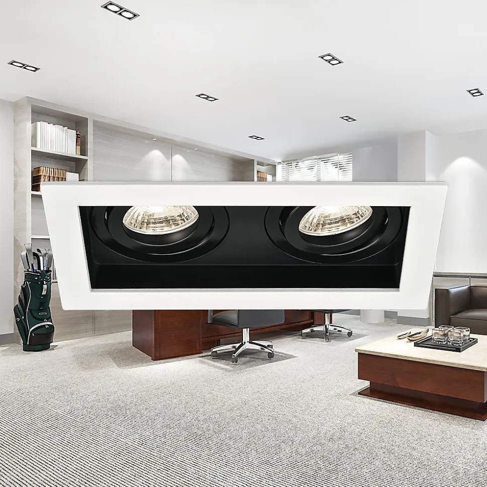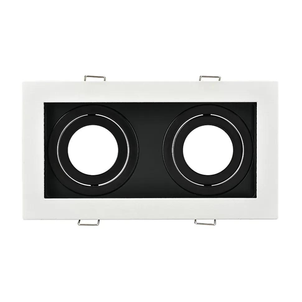 Ce support 2x spots Beta R5 rectangle blanc/noir MR16 GU10/GU5.3 se complète avec une ampoule MR16 GU5.3/GU10 et la douille qui correspond. Son corps est en aluminium avec d’excellentes finitions et son design incurvé lui permet de diffuser la lumière sans éblouissement. Pour l’installation, vous devez disposez d’un faux plafond pour pouvoir encastrer le spot et le fondre dans le décor. La pose au plafond est simple et rapide, grâce aux fixations à ressorts. L’ampoule MR16 GU5.3/GU10 s’installe sans l’aide d’aucun outil, car elle se clipse fermement au support. Le support quant a lui est orientable et permet donc de cibler une zone particulière. Nous vous conseillons l’utilisation d’ampoules LED à faible consommation d’énergie. Elles s’adaptent parfaitement aux supports de spots et permettent de réaliser jusqu’à 85% d’économie d’énergie. Elles sont idéales en remplacement des anciennes ampoules halogènes énergivores. L’indice de protection IP20 impose une installation à l’intérieur de l’habitat. Le support 2x spots Beta R5 rectangle blanc/noir MR16 GU10/GU5.3, convient aussi parfaitement aux locaux commerciaux comme les magasins, bureaux, restaurants, hôtels.. Ampoules et douilles non incluses. Dimensions : Profondeur : 44mm Longueur/Largeur : 180x100mm