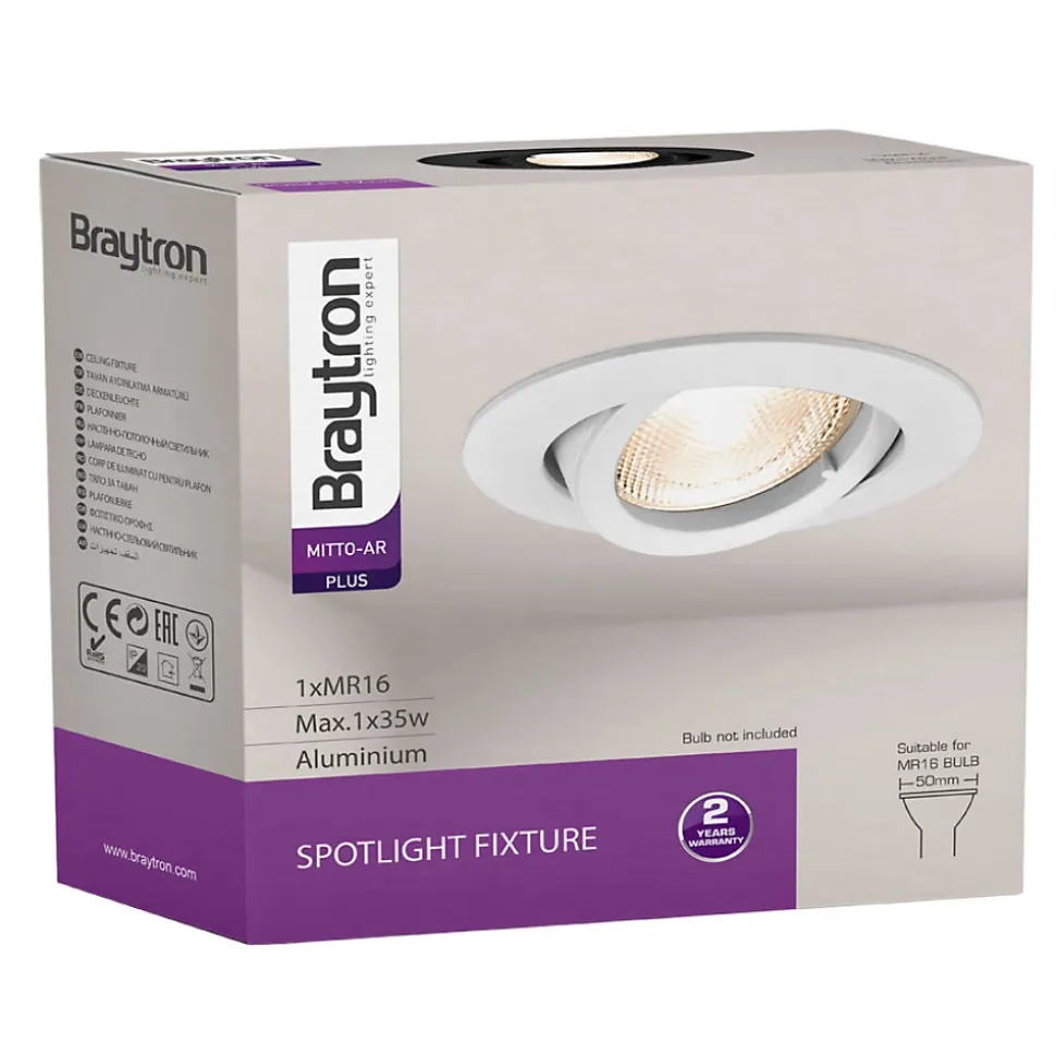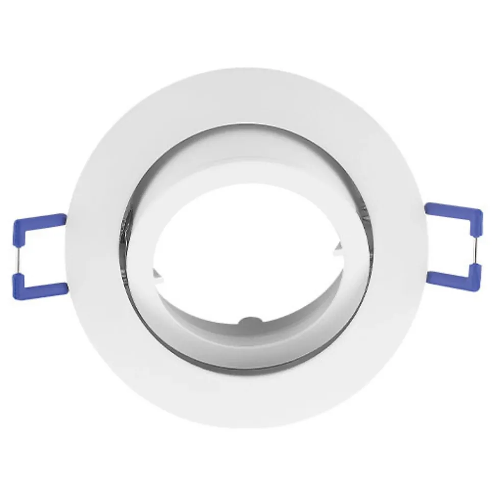 Ce support de spot rond blanc orientable GU10/GU5.3 IP20, se complète avec une ampoule MR16 GU5.3/GU10 et la douille qui correspond. Son corps est en aluminium avec d’excellentes finitions. Pour l’installation, vous devez disposez d’un faux plafond pour pouvoir encastrer le spot et le fondre dans le décor. La pose au plafond est simple et rapide, grâce aux fixations à ressorts. L’ampoule MR16 GU5.3/GU10 s’installe sans l’aide d’aucun outil, car elle se clipse fermement au support. Le support est quand à lui orientable et permet donc de cibler une zone particulière. Nous vous conseillons l’utilisation d’ampoules LED à faible consommation d’énergie. Elles s’adaptent parfaitement aux supports de spots et permettent de réaliser jusqu’à 85% d’économie d’énergie. Elles sont idéales en remplacement des anciennes ampoules halogènes énergivores. L’indice de protection IP20 impose une installation à l’intérieur de l’habitat. Le support de spot rond blanc, convient aussi parfaitement aux locaux commerciaux comme les magasins, bureaux, restaurants, hôtels.. Ampoules et douilles non incluses. Dimensions : Profondeur : 25mm Diamètre : 82mm Poids : 70gr Diamètre de découpe: 70mm Plusieurs modèles de supports de spots sont disponibles en différentes couleur et finitions, fixe ou orientable. Produit conforme à la norme CE, à la directive RoHS et DEEE.