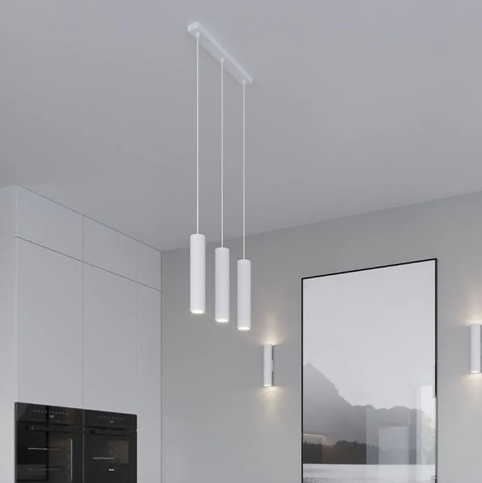 [Suspension 3 Lampes Blanc pour Ampoules GU10] Optez pour un luminaire ultra-tendance avec la Suspension 3 Lampes Blanc pour Ampoules GU10 ! Elle est discrète mais saura faire son effet dans votre intérieur.[Design] La simplicité de cette lampe est aussi ce qui en fait son efficacité. Elle est composée de 3 lampes cylindriques blanches fonctionnant grâce à des ampoules GU10, reliées chacune à un plateau rectangulaire blanc par un câble. Chaque lampe mesure 30cm, chaque câble 60cm et le plateau mesure 45cm de longueur par 5cm de largeur.[Fonctionnement] Vous n’avez besoin que de 3 ampoules GU10 de maximum 12W de puissance chacune pour faire fonctionner votre luminaire ! Une fois branché au courant, il est prêt à illuminer votre pièce ![Important] Ampoules LED GU10 non fournies.[La qualité Silamp] Silamp s’engage pour vous fournir des produits de qualité et garantis 2 ans, ainsi qu’un service client à l’écoute et réactif.- [Suspension 3 Lampes Blanc pour Ampoules GU10] Optez pour un luminaire ultra-tendance avec la Suspension 3 Lampes Blanc pour Ampoules GU10 ! Elle est discrète mais saura faire son effet dans votre intérieur.