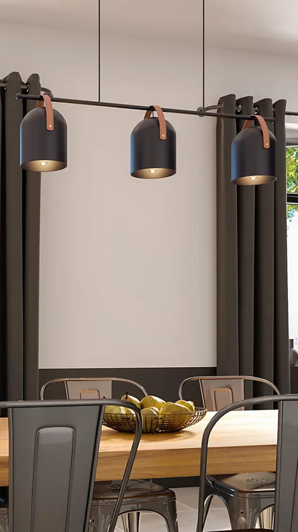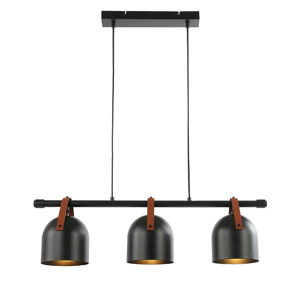 Suspension 3 lampes Hayott noir E27 15W IP20 L.75 x H.120 cm