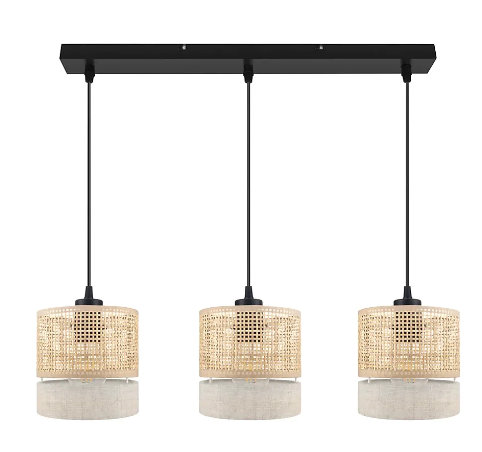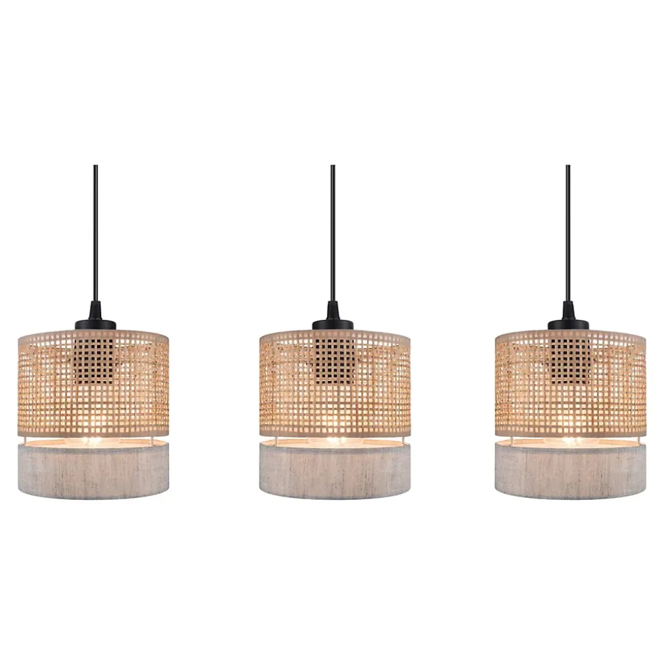 Suspension 3 lampes rotin et métal noir E27 15W H.110cm GoodHome Conebill