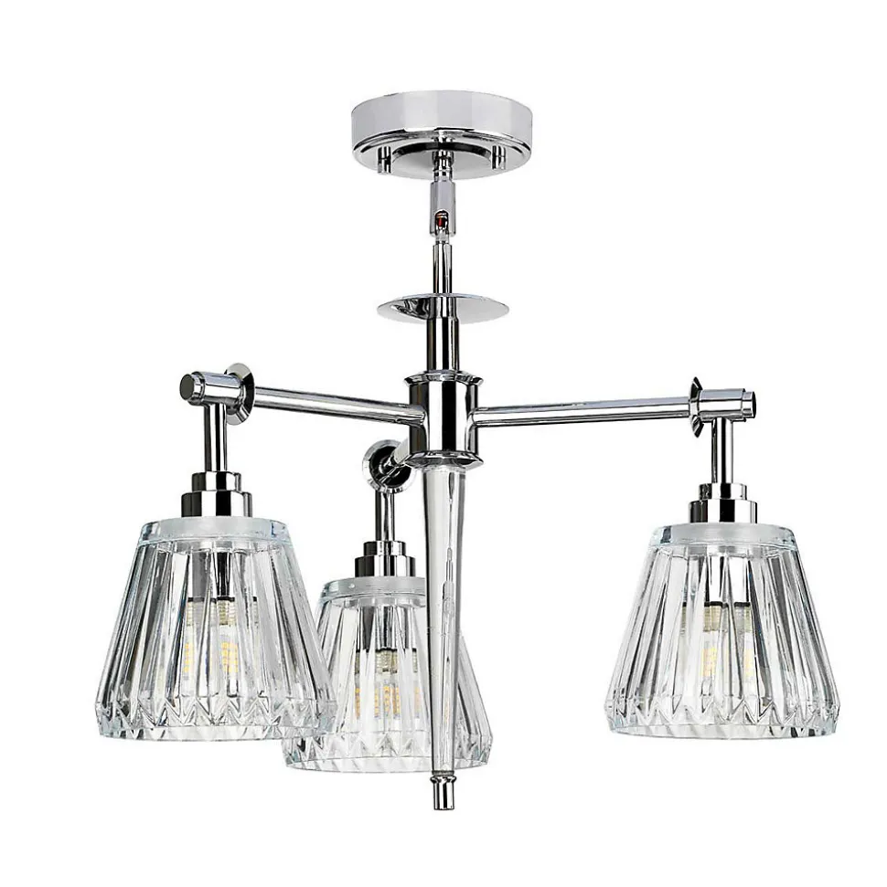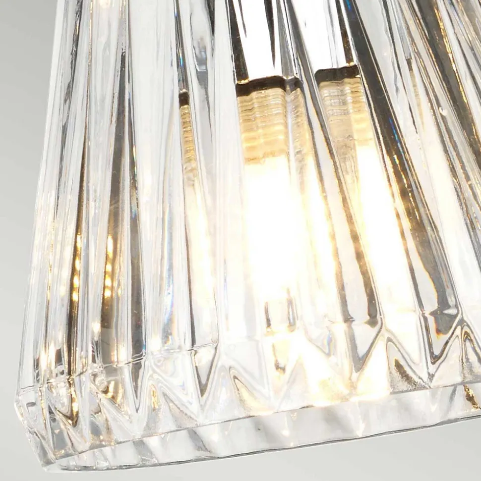 La gamme Agatha présente un indice de protection IP44 pour les salles de bains, mais peut également être utilisée dans les couloirs et autres espaces de vie. Une LED intégrée éclaire la tige en acrylique de l’applique murale et de la suspension à 3 lampes. La lumière scintille à travers les abat-jours en verre taillé transparent de tous les modèles. La collection est disponible en deux finitions : chrome poli et nickel brossé.