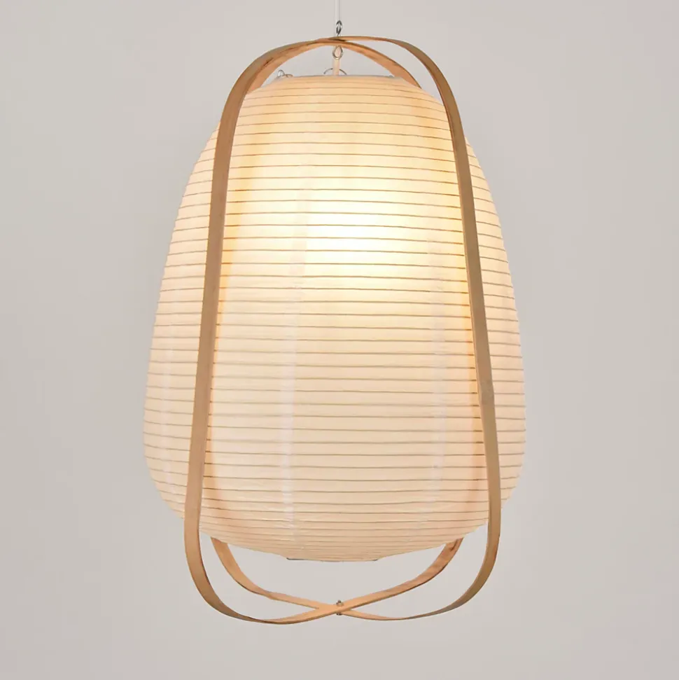 Suspension forme lanterne en papier japonais et structure en bambou. Suspension Akemi E27 IP20 40W L.17 x l.13 x H.47 x Ø36 cm papier japonais, bambou, blanc Corep
