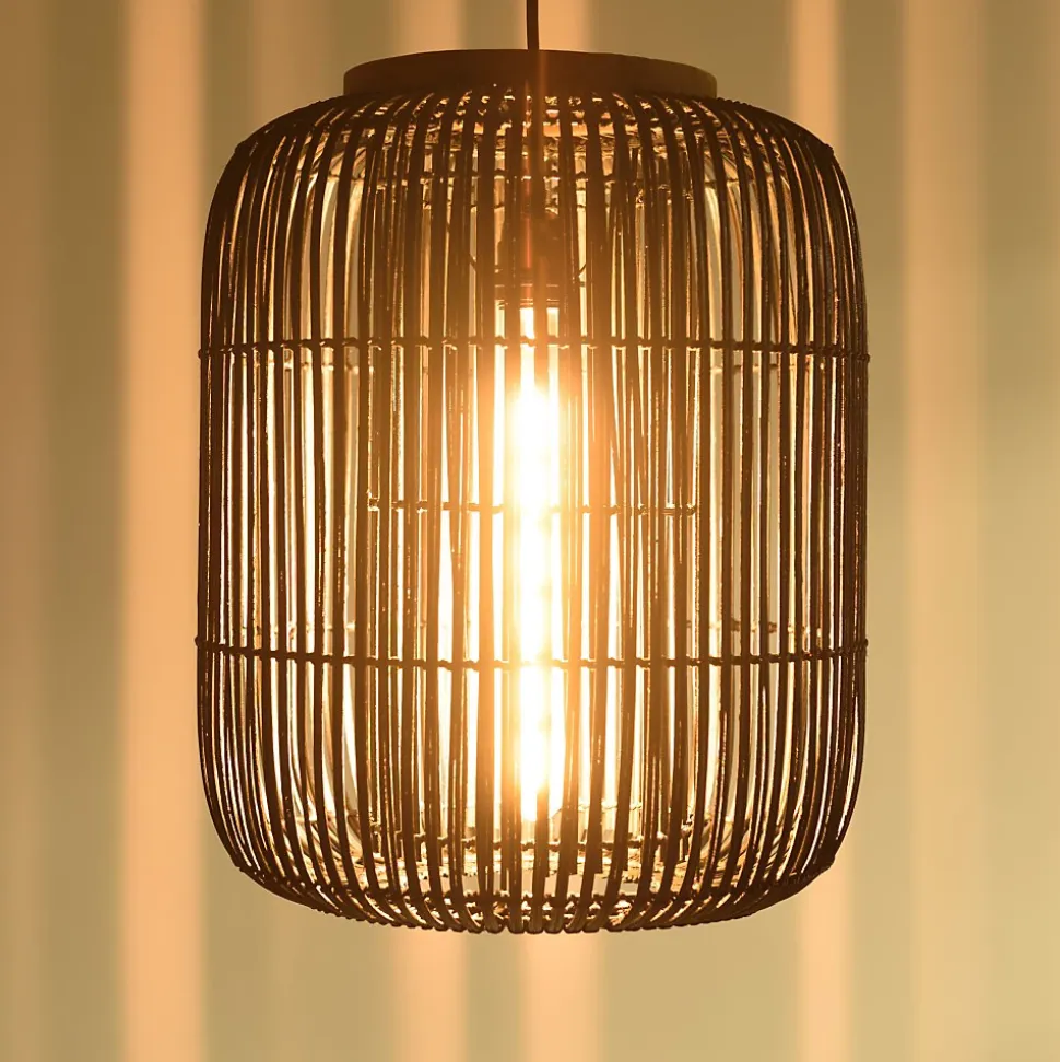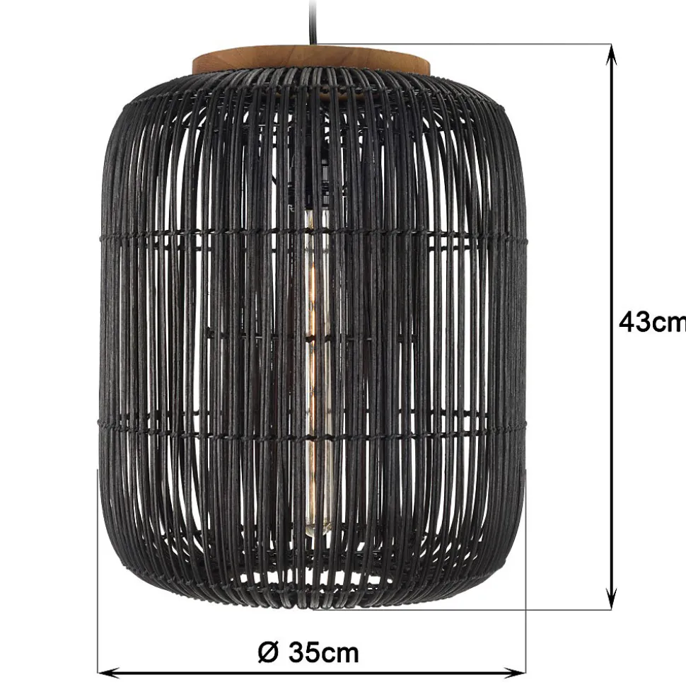Suspension ‘allongée’ 35x35cm en rotin couleur noire et teck. Article en Rotin/Teck recyclé/Acier. Dimension 35 x 35 x 43 cm.