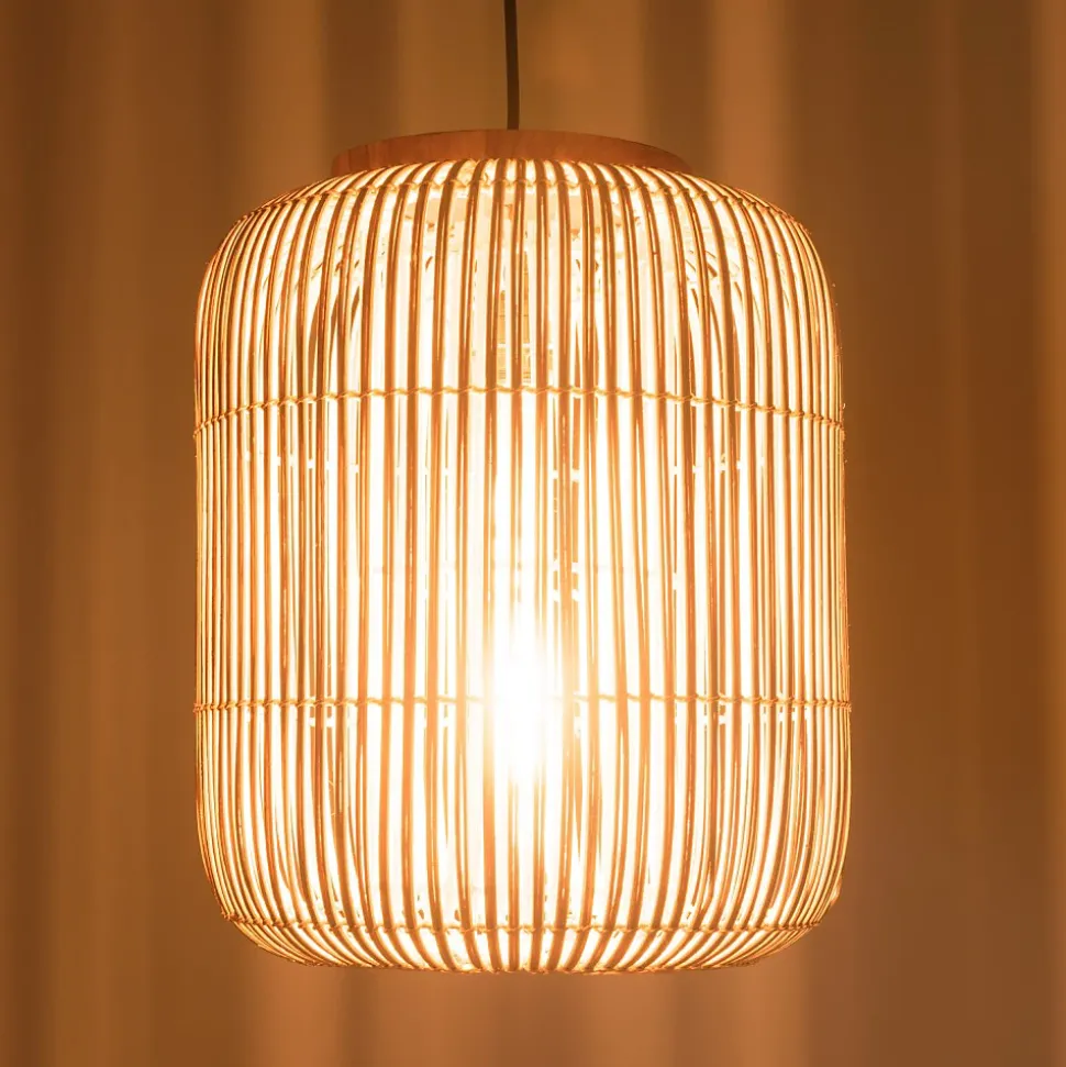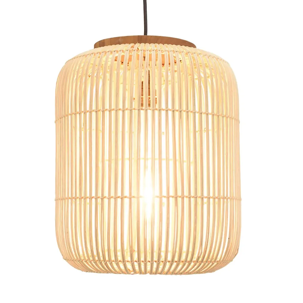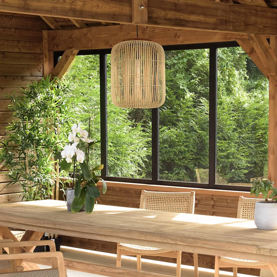 Suspension ‘allongée’ 35x35cm rotin couleur naturelle et teck. Article en Rotin/Teck recyclé/Acier. Dimension 35 x 35 x 43 cm.