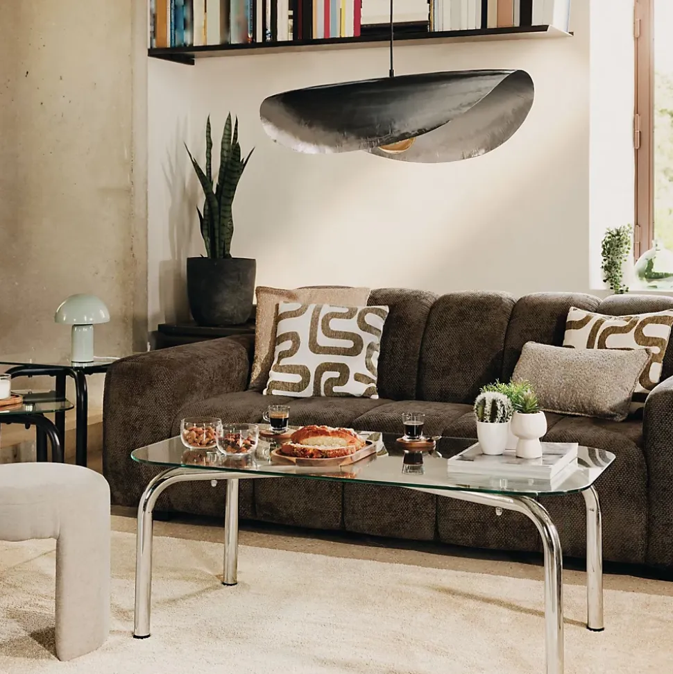Si vous cherchez un abat-jour original qui donnera un aspect chaleureux à votre salon ou à votre chambre, craquez pour la suspension Arlo d’Atmosphera !La suspension Arlo est majoritairement composée de métal et d’acier. Ses reflets dorés enchanteront la pièce dans laquelle elle sera suspendue et créeront une lumière à la fois chaude et éclatante.Ampoule compatible E27 non fournieCoomment entretenir votre produit ?Dépoussiérez régulièrement avec un chiffon doux.Comment déballer et monter votre produit ?Avant de commencer le montage, protégez votre surface de travail pour éviter tout dommage.Suivez attentivement les instructions de la notice incluse dans l’emballage.Conservez l’emballage et la notice quelques jours en cas de retour ou de démontage.Consultez les consignes de tri de votre commune pour recycler correctement votre emballage.Nos photos sont prises en studio, il peut arriver que les couleurs soient influencées par cet éclairage spécifique, mais nous nous efforçons de réaliser des prises de vue aussi proches de la réalité que possible. Dimensions produit : L.76 x l.128 x H.54 cmPoids : 1,93 Kg