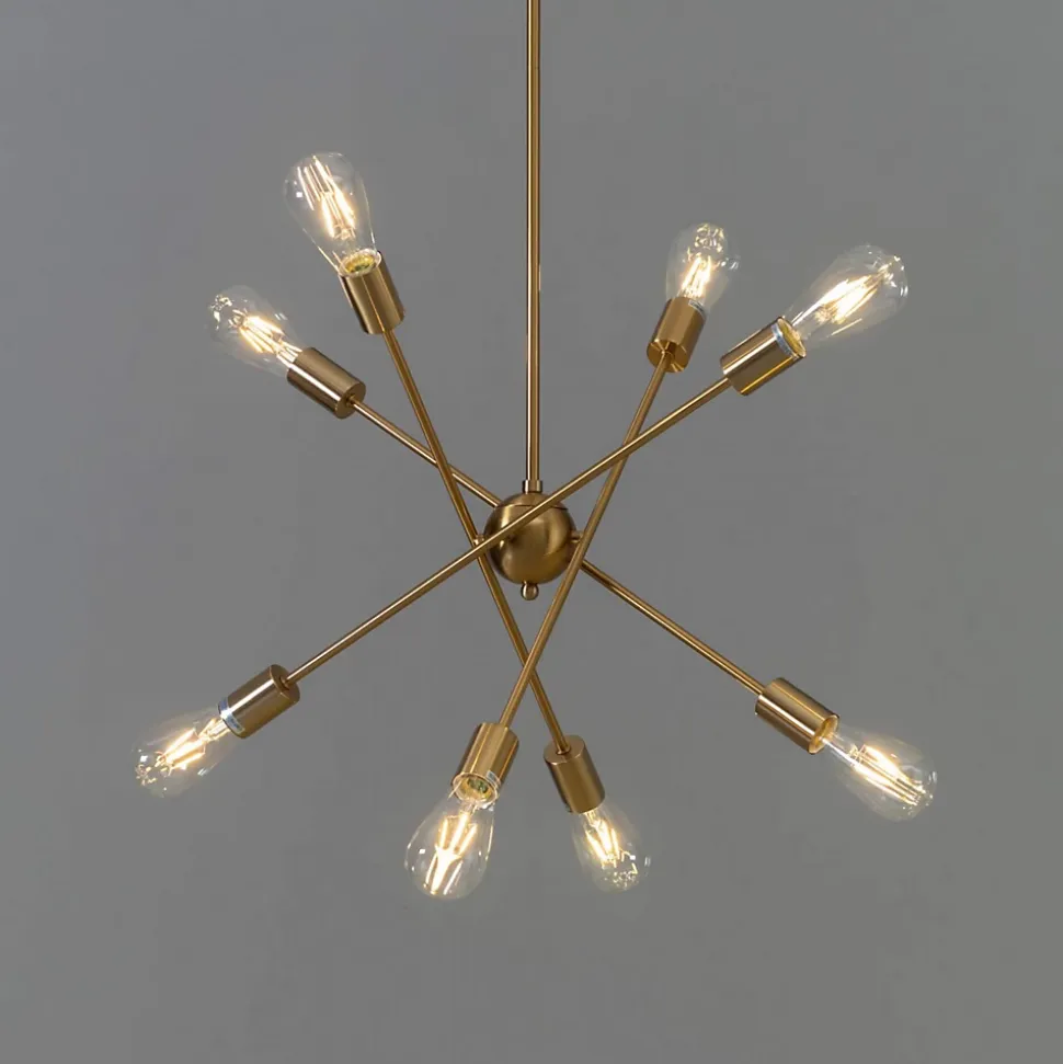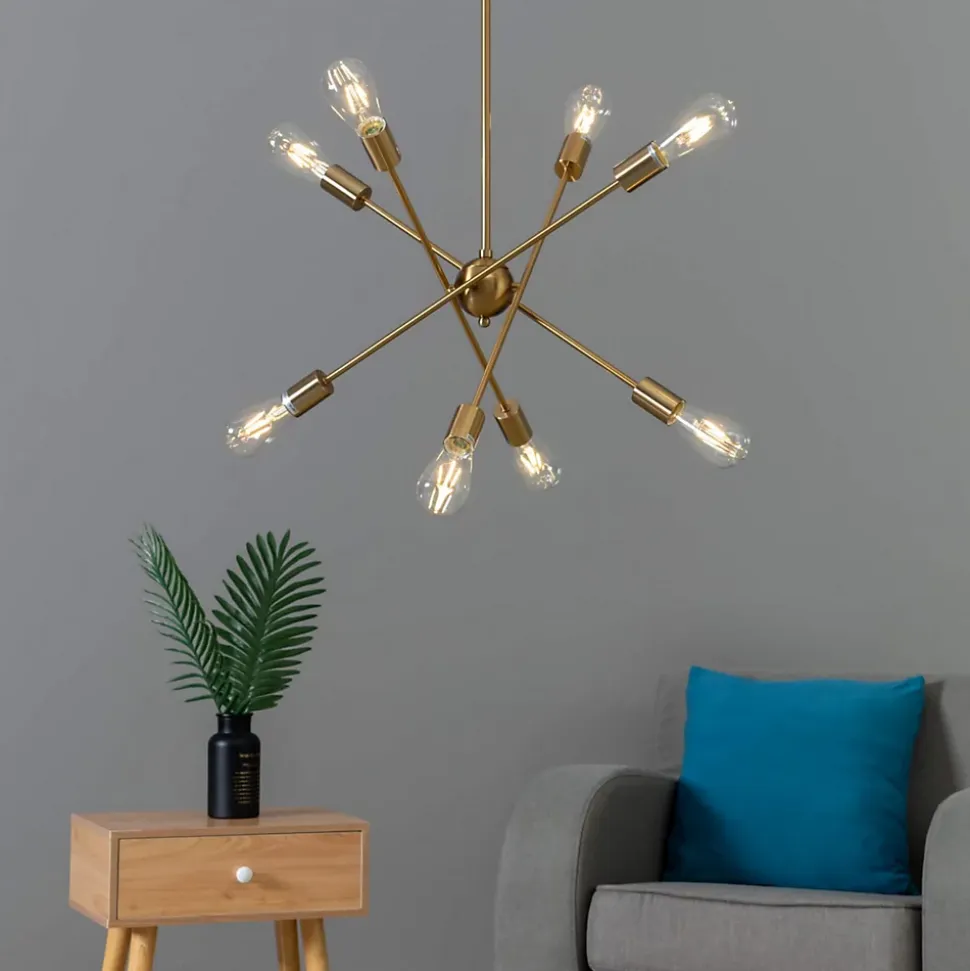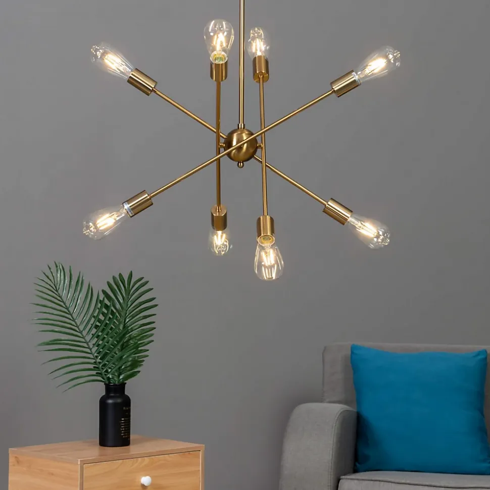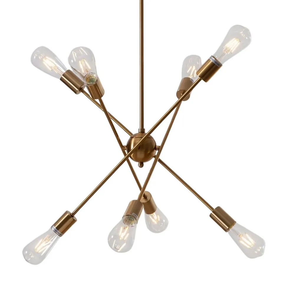 Laissez-vous séduire par la suspension Sagitta dorée à quatre tiges métalliques ! Ce luminaire suspendu au coloris laiton et à la hauteur ajustable est équipé de 8 sources lumineuses, chacune accueillant une ampoule E27 pour une excellente qualité d’éclairage. Existe aussi en version trois tiges noire ou dorée.
