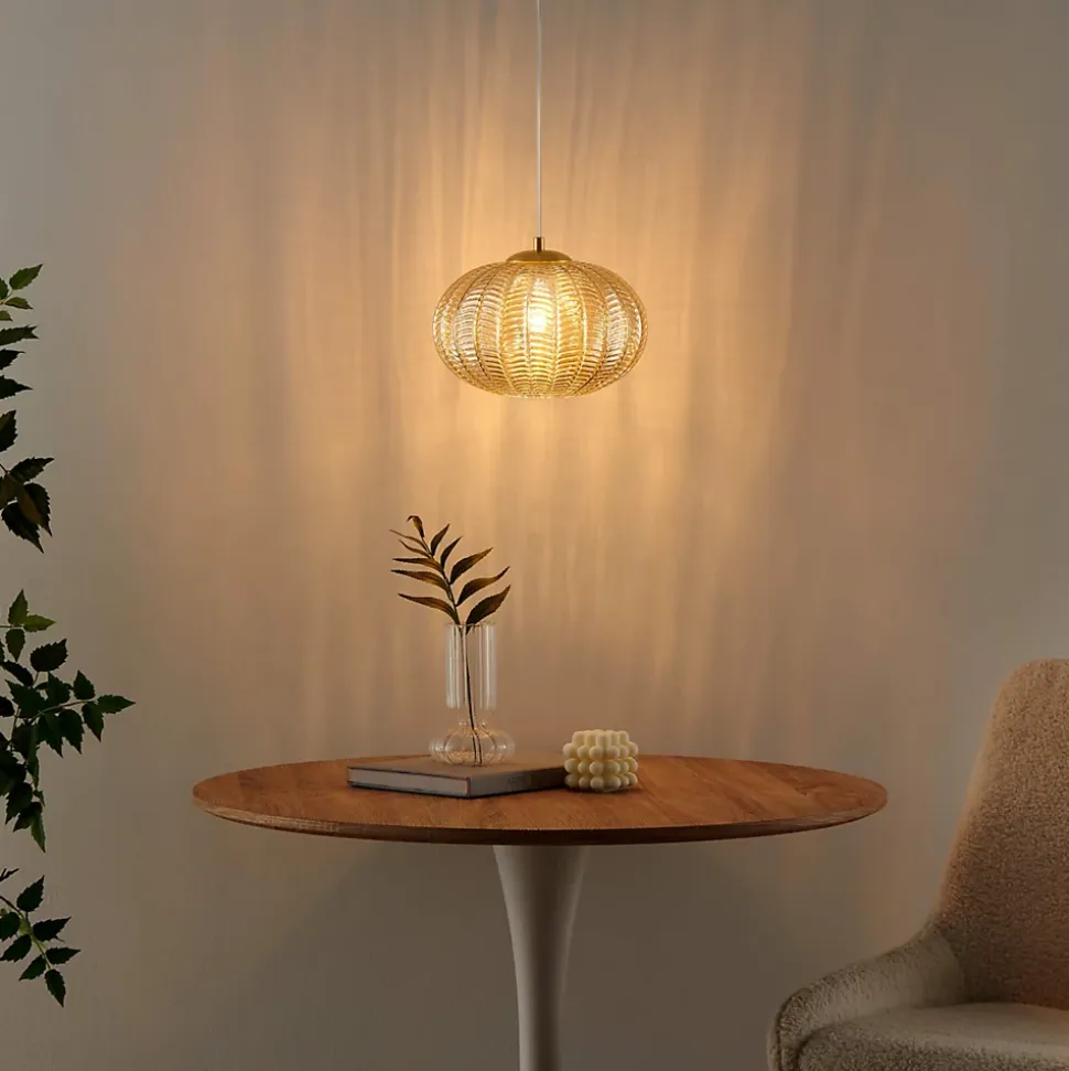 Plongez dans l’ambiance bohème avec la suspension Melizzo, qui magnifie un verre ambré orné de motifs décoratifs. Son design captivant apporte une touche d’originalité à votre décoration, tandis que côté technique, elle requiert une ampoule E27 pour une luminosité optimale. Avec sa hauteur de câble réglable, Melizzo s’adapte à vos besoins, et avec un diamètre total de 26 cm, elle offre un éclairage chaleureux et stylisé dans votre espace.) Assemblage simple requis (