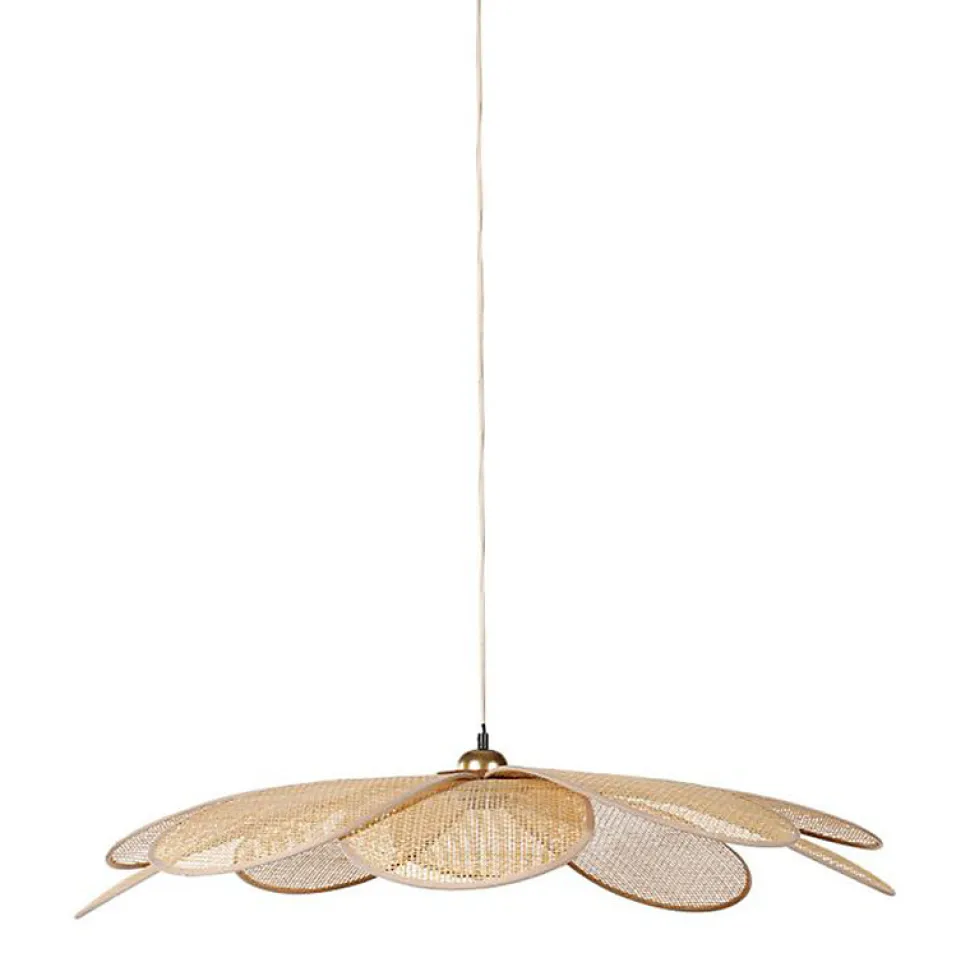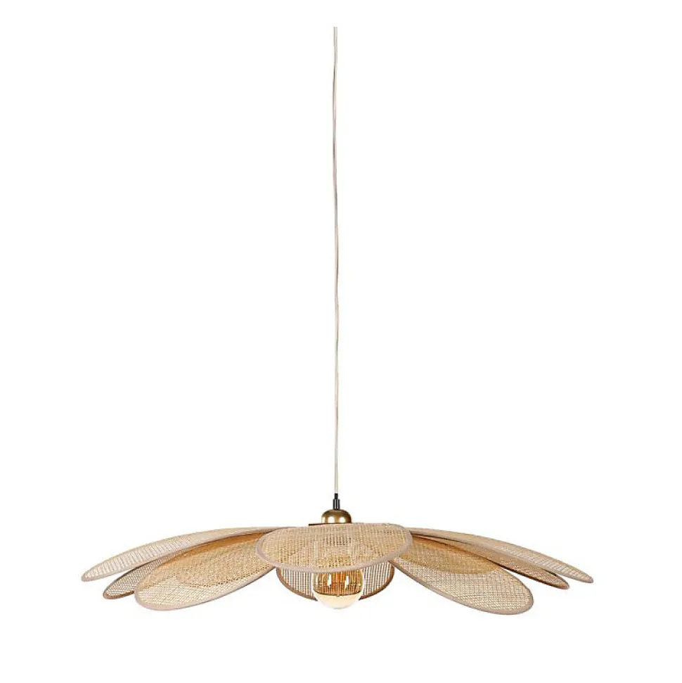Ayez le coup de cœur pour la suspension Grande Margaux en bambou de la marque Ostaria pour un intérieur illuminé avec style. Les différentes parties se déploient comme des pétales. Cordon d’alimentation beige de 115 cm. Fonctionne avec une ampoule douille E27 non incluse. Puissance max 40W. 220-240V. 50Hz. Poids : 1,44 kg. Matière : bambou et métal. Dimensions : D. 90 x H. 10 cm. Marque : Ostaria.