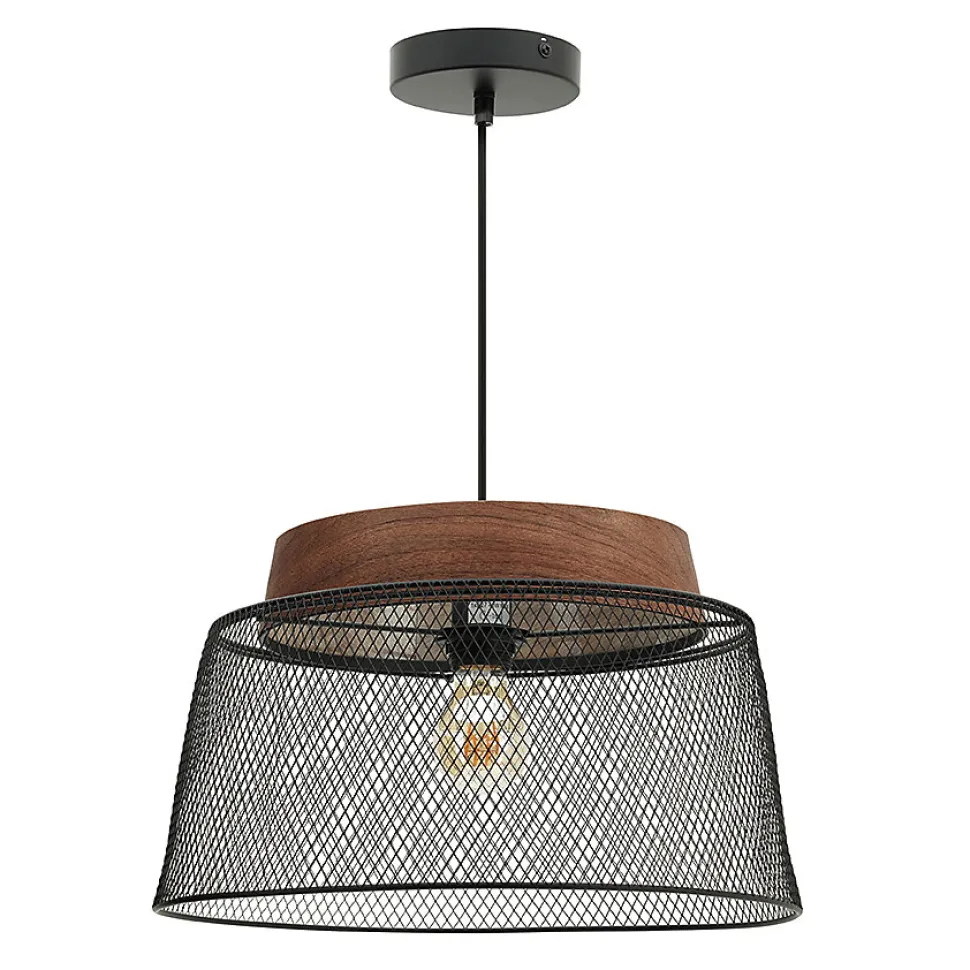 Suspension Barella métal noir et rotin E27 40W IP20 Ø40cm x H.160cm Seynave