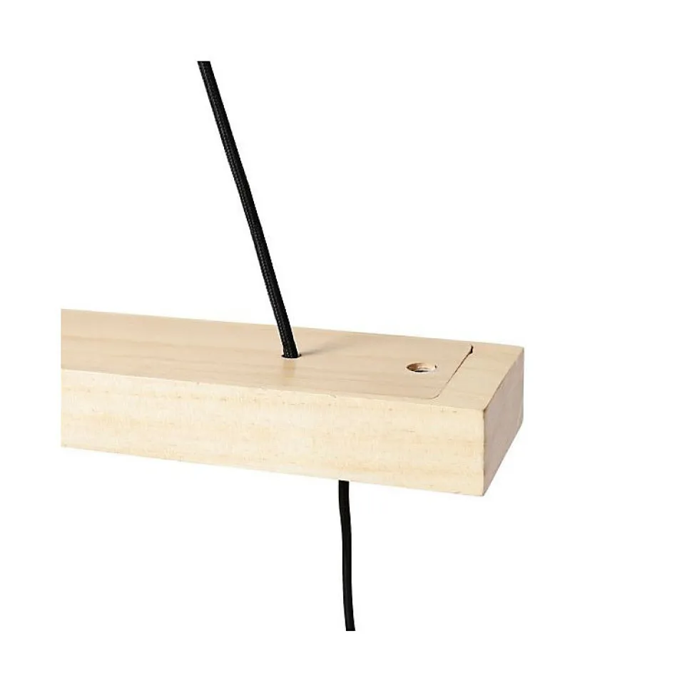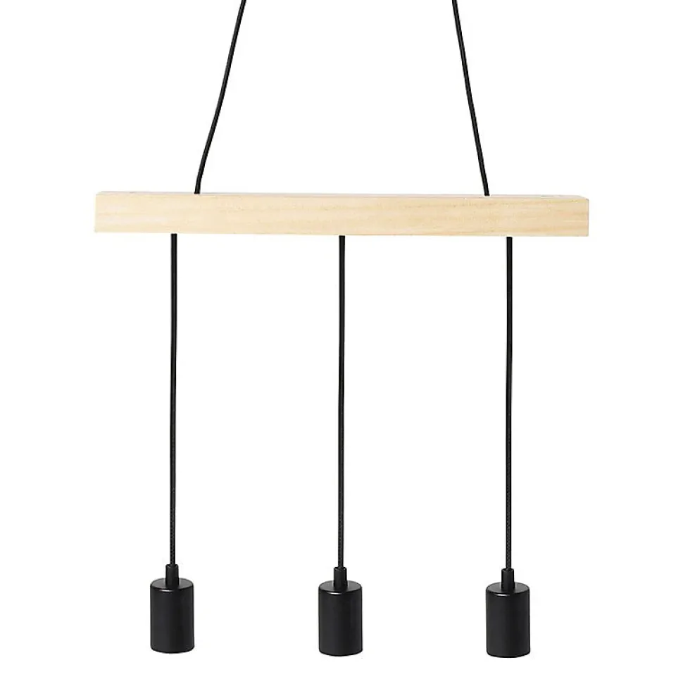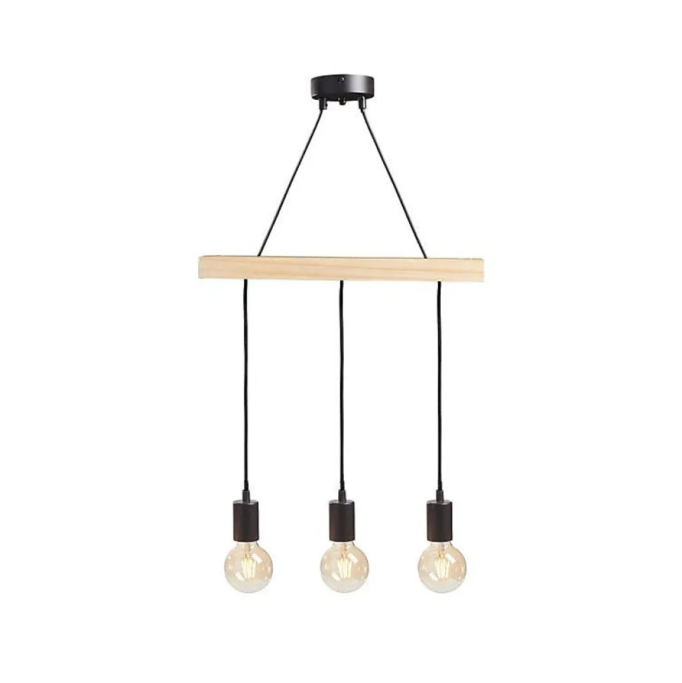 Craquez pour le style industriel de ce modèle de suspension 3 cordons avec douille simple en métal noir.Sobre mais tendance, cette rampe de luminaire saura s’accorder dans n’importe quel intérieur.Ampoules non incluses. Douille à vis E27. Cordon 55 cm. Dimensions : L45 x l8 x H45 cm. Poids : 1,2 kg. Matière : métal et bois.