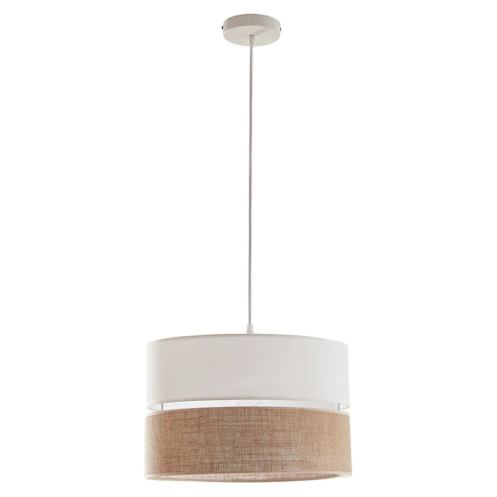 SuspensionLa suspension séduit par son design unique et élégant et s’intègre parfaitement dans n’importe quel environnement de vie ou de travail. Elle s’harmonise avec différents styles d’intérieur, du moderne au classique.Le matériel de montage nécessaire est inclus dans la livraison, vous permettant de le fixer rapidement au plafond. Son assemblage simple vous permet d’éclairer aisément votre espace de vie.La suspension est dotée de 2 abat-jour ronds superposés qui complètent avec raffinement l’ensemble du design. La douille maintient l’ampoule en place et garantit un fonctionnement fiable.Points forts du produit :- suspension moderne pour l’intérieur- design harmonieux pour le salon, la chambre ou le bureau- effet lumineux agréable grâce au double abat-jour- installation sans effort grâce aux accessoires fournis- douille robuste pour un éclairage stable et sécuriséCaractéristiques techniques :- douille : 1 x E27, max. 60 W- tension : 230 V, 50 Hz- type de protection : classe IDimensions :- hauteur totale : 157 cm- double abat-jour (h x Ø) : 25 x 40 cm- fixation au plafond (h x Ø) : 2,5 x 12 cmMatière :- fixation au plafond : métal- double abat-jour : tissu (100 % polyester)Couleur :- fixation au plafond : blanc- abat-jour supérieur : blanc- abat-jour inférieur : effet linContenu de la livraison :1 x suspension (ampoules non fournies)Produit de la marque :lux.pro