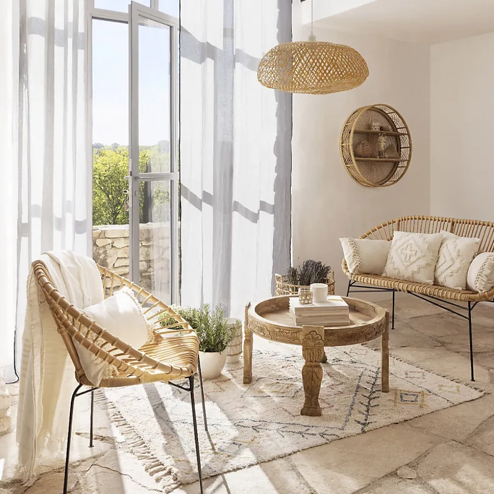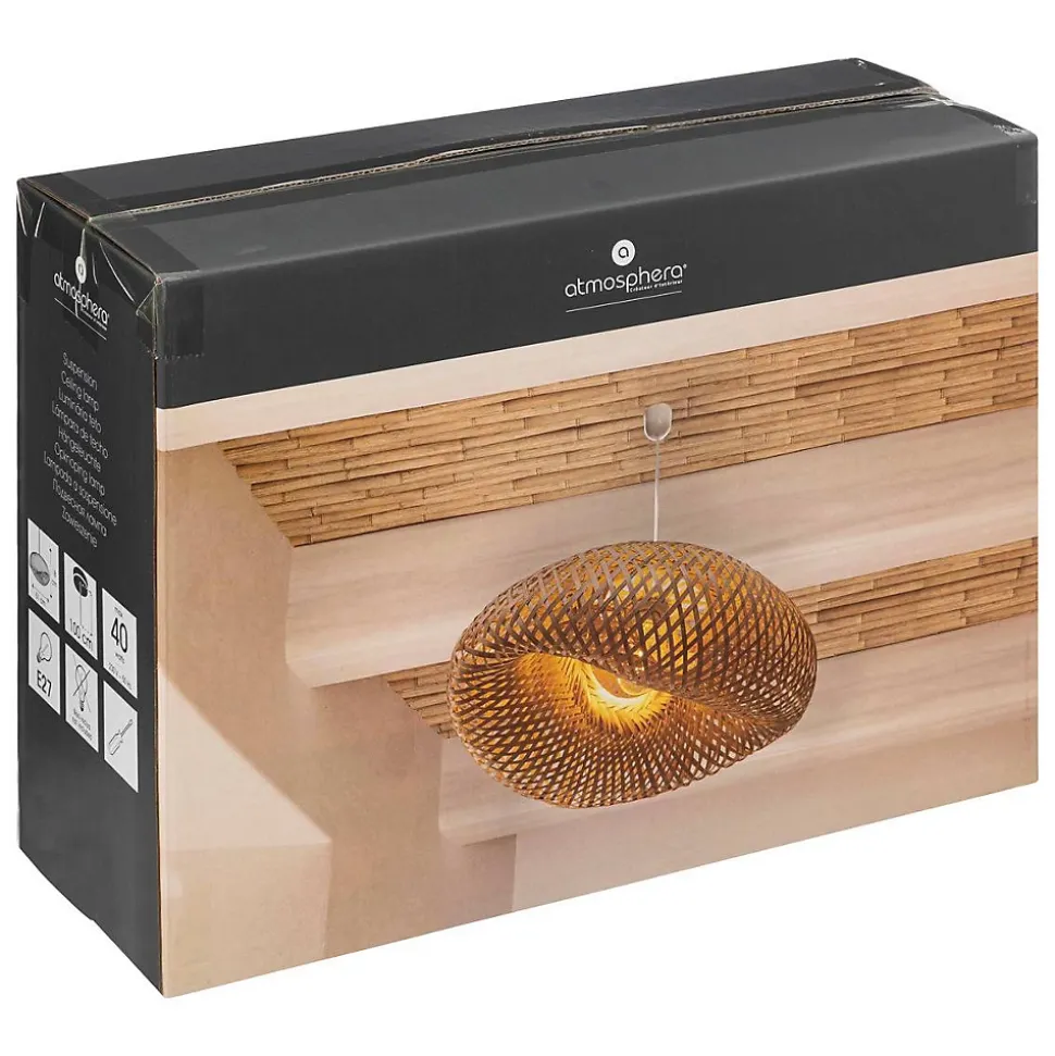 Craquez pour la suspension « Beddy » Atmosphera et offrez-vous un luminaire pile dans les tendances d’ici et d’ailleurs !Un style exotiqueComposée d’une grande canopée en bambou tressé, cette suspension « Beddy » obéit à une forme originale et vous permettra de créer une décoration pleine de caractère. Idéale pour éclairer un coin salon ou une entrée, elle se mariera parfaitement avec des matières naturelles comme le bois, la jute et le rotin.Installez votre suspension « Beddy » au-dessus d’une table à manger Atmosphera en bois d’acacia et profitez d’un ensemble chaleureux.Le petit plus décoComplétez votre déco avec un grand vase en céramique à l’allure artisanale, que vous garnirez de fleurs séchées.