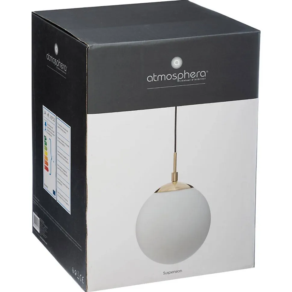 Comment bien éclairer une pièce épurée d’inspiration contemporaine ? La suspension « Dris » Atmosphera est là pour vous aider. Un look très chic La suspension boule « Dris » séduit par sa forme simple et sa réalisation soignée. On aime les touches de métal sur le dessus de l’abat-jour, rappelées au niveau de la fixation par un cercle de la même matière. Le cordon noir apporte juste ce qu’il faut de contraste. Une luminosité agréable La suspension en verre « Dris » produit une lumière douce, qui convient aussi bien à un salon qu’à une entrée ou à une chambre. Vous pouvez associer plusieurs suspensions assorties dans un couloir pour créer un effet design. Cette suspension boule est idéale dans une entrée aménagée avec une patère Atmosphera aux accents dorés pour un rappel discret. Le petit plus déco Le verre dépoli est naturellement tamisé, vous pouvez donc utiliser une ampoule d’une forte intensité lumineuse sans risque d’être ébloui.