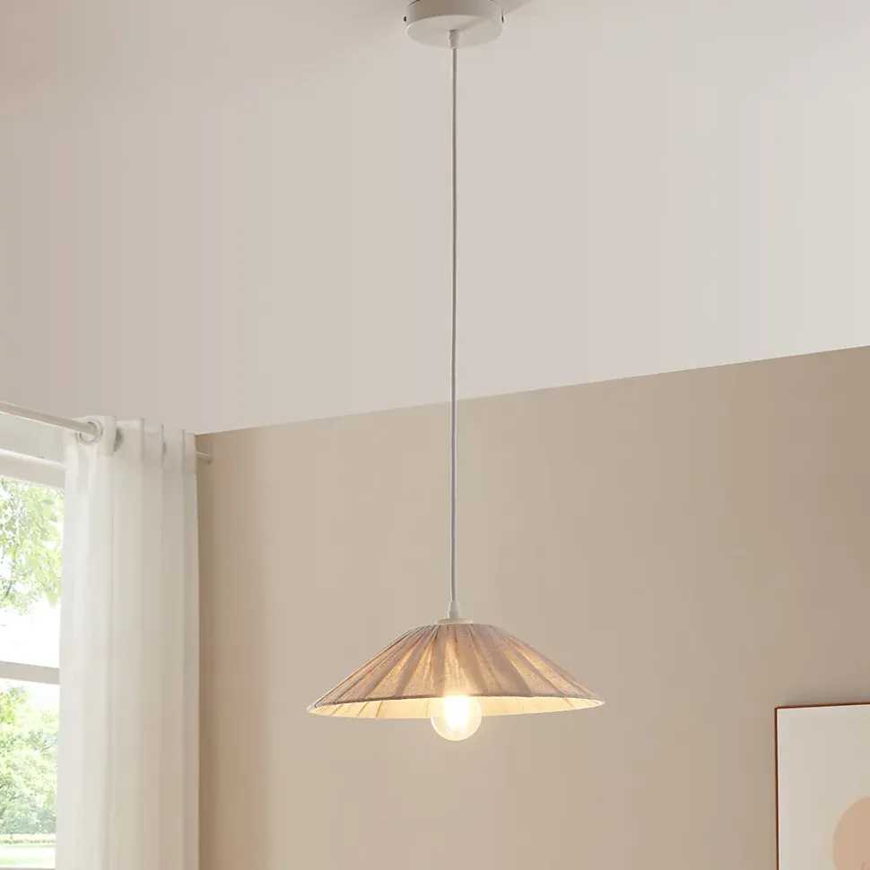 - Matières de qualité et finitions soignées : alliant métal et tissu polyester, cette suspension combine solidité, esthétique et légèreté visuelle.