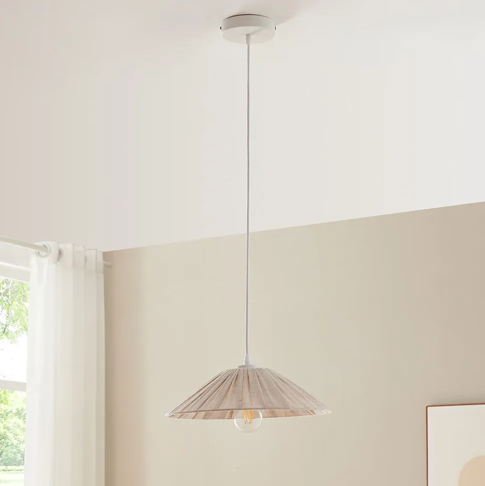 SuspensionLa suspension séduit par son design unique et s’intègre parfaitement dans n’importe quel environnement de vie ou de travail. Elle s’harmonise avec différents styles d’intérieur, du moderne au classique.Le matériel de montage nécessaire est inclus dans la livraison, vous permettant de le fixer rapidement au plafond. Son assemblage simple vous permet d’éclairer aisément votre espace de vie.L’élégant abat-jour confère à la suspension un rendu visuel particulièrement soigné. La douille maintient l’ampoule en place et garantit un fonctionnement fiable.Points forts du produit :- suspension intemporel pour l’intérieur- design harmonieux pour salon, chambre ou espace de travail- abat-jour stylé pour une esthétique haut de gamme- installation sans effort grâce aux accessoires fournis- douille robuste pour un éclairage stable et sécuriséCaractéristiques techniques :- douille : 1 x E27, max. 60 W (ampoule non incluse)- tension : 230 V, 50 Hz- type de protection : classe de protection IDimensions :- hauteur totale : 142 cm- abat-jour (Ø) : 35 cm- fixation au plafond (h x Ø) : 2,5 x 12 cmMatière :- fixation au plafond : métal- abat-jour : tissu (100 % polyester)Couleur :blanc / beigeContenu de la livraison :1 x suspension (ampoules non fournies)Produit de la marque :lux.pro
