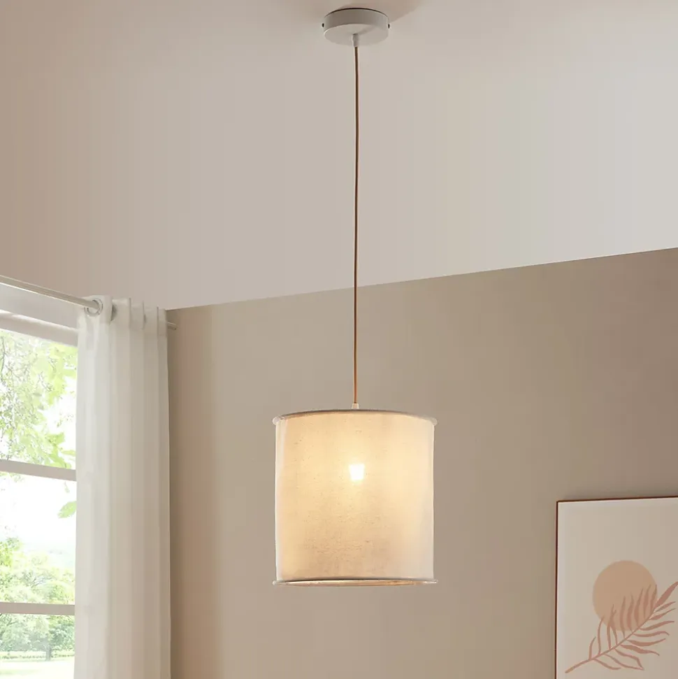 - Abat-jour raffiné en tissu : sa forme sobre et ses finitions soignées confèrent à la suspension un style haut de gamme et un rendu visuel harmonieux.
