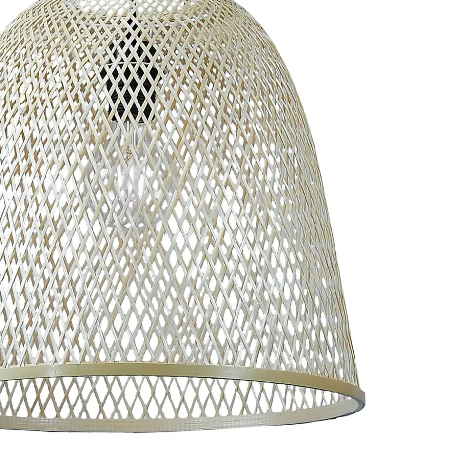 Nos suspensions ont été conçues dans un certain nombre de formes, de matières et de finitions pour vous permettre de trouver facilement celle qui vous convient. Cette suspension en fibre naturelle peut parfaitement servir de source de lumière principale