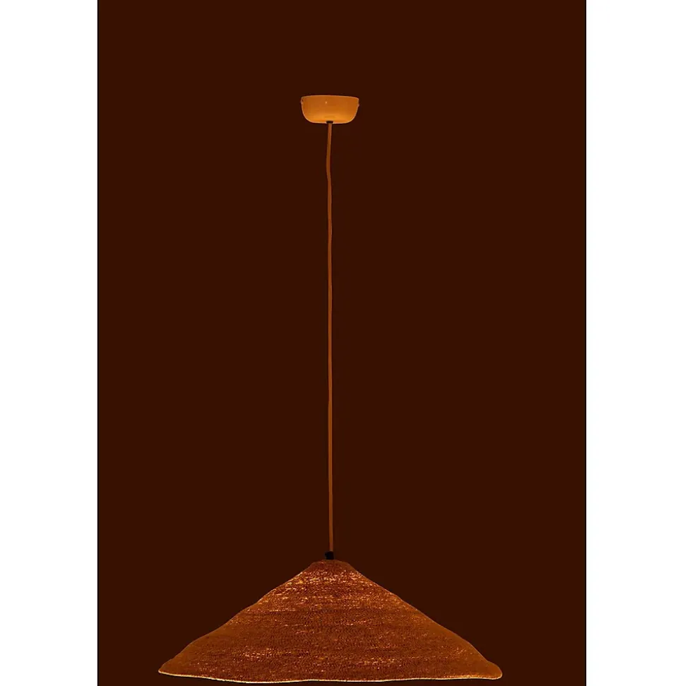 Luminaire vendu électrifié naturel avec monture E27 + cordon Une forme de chapeau chinois pour cette magnifique suspension en jonc de mer naturelle renforcée par une armature métallique que l’on adore. Cet abat-jour sera parfait dans un salon, au dessus d’une table de repas ou encore dans une chambre. Ce luminaire est livré complètement électrifié E27 (monture cordon tissus beige + plafonnier métal écru) – Taille : D. 60 cm et hauteur 20 cm. Découvrez le reste de la gamme suspension naturelles >> tous nos lustres en bois