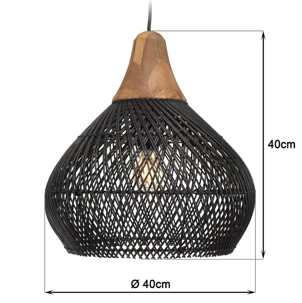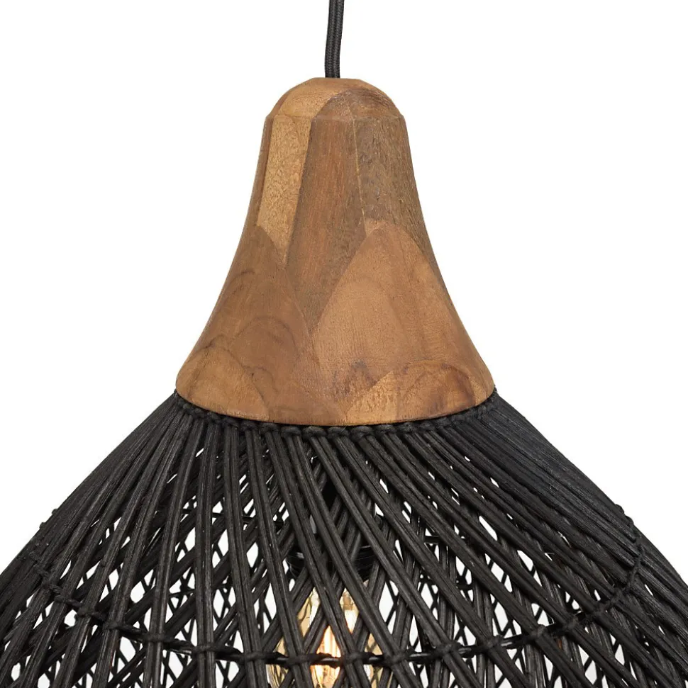 Suspension ‘cloche’ 40x40cm en rotin couleur noire et teck. Article en Rotin/Teck recyclé/Acier. Dimension 40 x 40 x 40 cm.