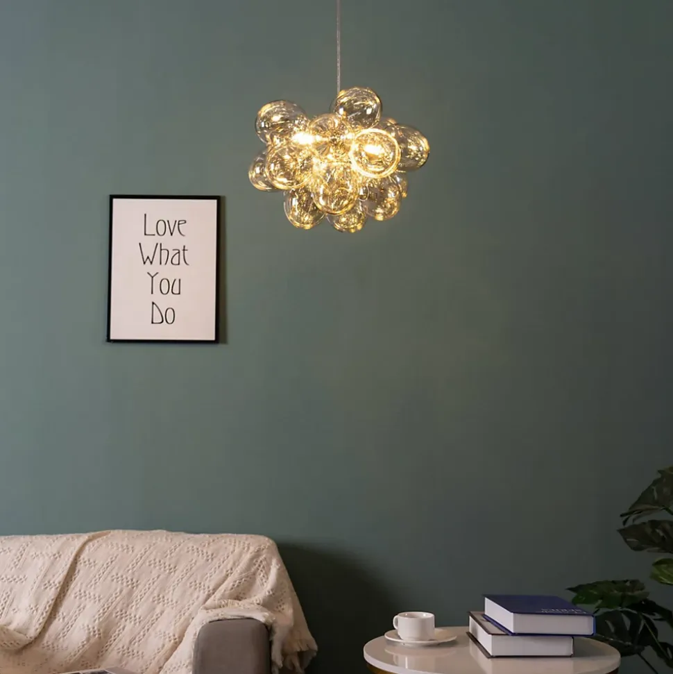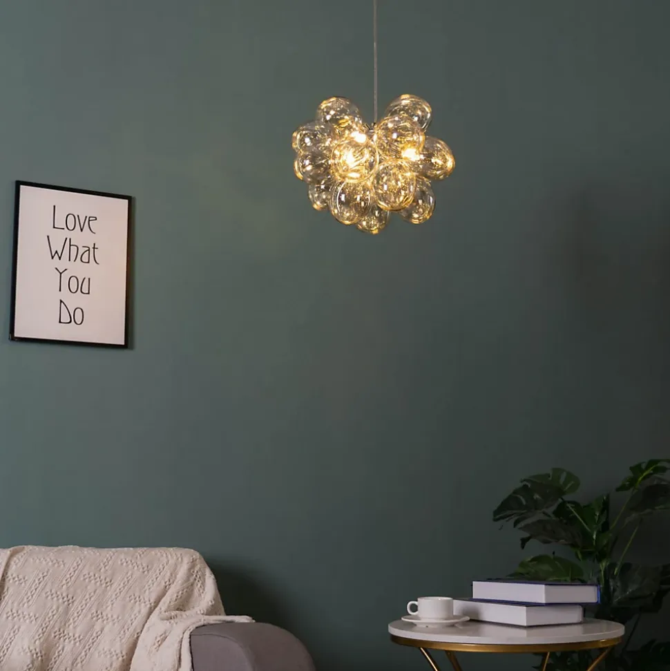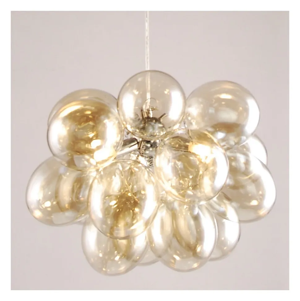 La suspension Bartali, avec ses 17 sphères en verre ambré, est la quintessence du chic et du design pour votre intérieur ! Éclairez votre espace avec style en complétant cette suspension de 3 ampoules G9. Pour une solution d’éclairage économique et écologique, préférez les LED. Ne manquez pas de découvrir également la suspension à 36 sphères de la même collection pour une ambiance cohérente et sophistiquée.