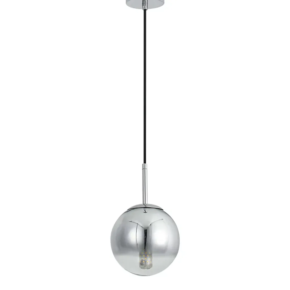 Suspension chromée La suspension Palla, petite et simple, est en verre chromé. Son abat-jour présente une forme sphérique classique. La lampe Palla est idéale pour des pièces comme le salon ou la salle à manger. Elle est du plus bel effet seule, mais vous pouvez aussi créer une composition lumineuse unique en l’associant à d’autres lampes de la collection Palla. La suspension Palla en détail Type de lampe : Suspension Palla, petite et simple. Dimensions : La lampe mesure 120 cm de haut et son abat-jour 15 cm de diamètre. Assez grande, elle constitue, outre sa fonction d’éclairage, un véritable élément décoratif qui sublimera n’importe quel intérieur. Matériaux et couleurs : La lampe est en verre chromé. Source lumineuse : La lampe est compatible avec les ampoules E14 et possède une douille simple. Utilisation de la petite suspension Palla La suspension Palla est un choix idéal Pour les salles à manger, les salons et les cuisines, au-dessus des îlots centraux. La lampe Palla présente une élégante finition chromée et une forme sphérique intemporelle. Elle s’harmonise aussi bien avec les intérieurs modernes que classiques. Sa couleur chromée se marie parfaitement avec les accessoires argentés, créant ainsi un ensemble harmonieux. La collection de suspensions Palla offre une infinité de possibilités pour associer les lampes et créer l’éclairage de votre choix. Deux tailles sont disponibles, ainsi que trois finitions : chrome, or et cuivre.