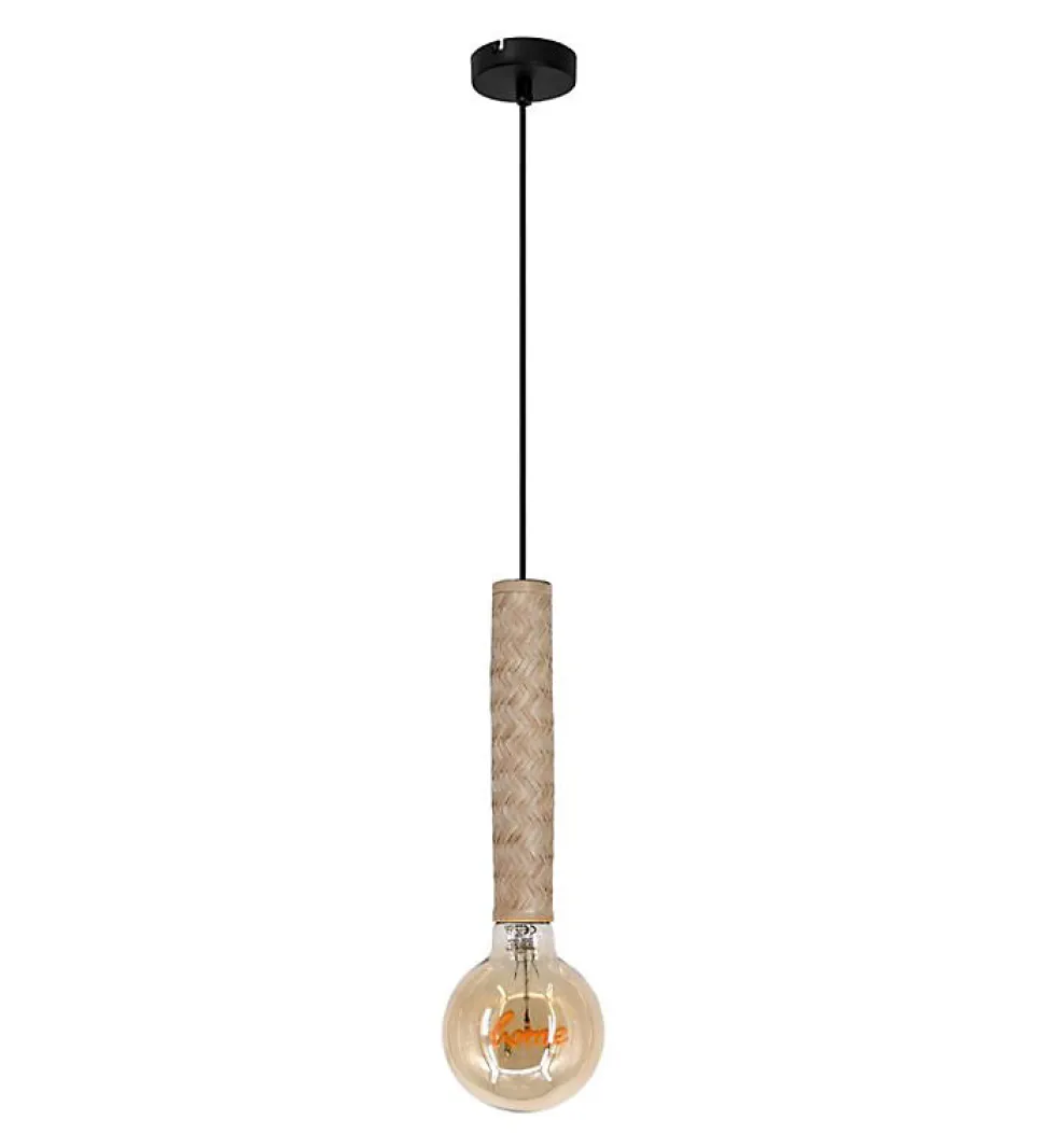 Caractéristique :- Puissance max : 40. W- Culot d?ampoule : E27- Materiaux : Métal et Bambou- Couleur : Noir et naturel- Hauteur : 132cm- Largeur : 10cmDescription :La suspension (ou plafonnier) Nala en métal noir et bambou naturel a une puissance maximale de 40. W et elle est compatible avec les ampoules E27 (ampoule fournie). La suspension fait 132cm de hauteur maximale (réglable) et 10cm de large.La suspension Nala 558072 est une solution d’éclairage polyvalente pour tous les espaces, des chambres aux espaces de vie en passant par les bureaux.