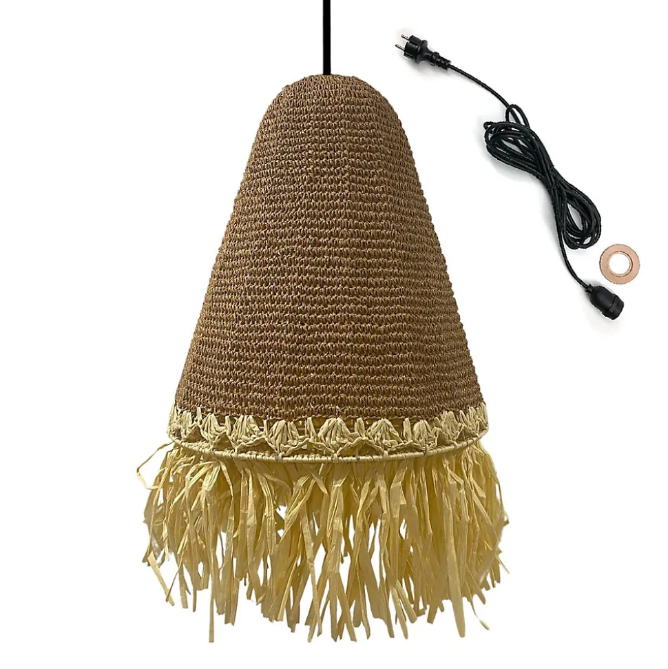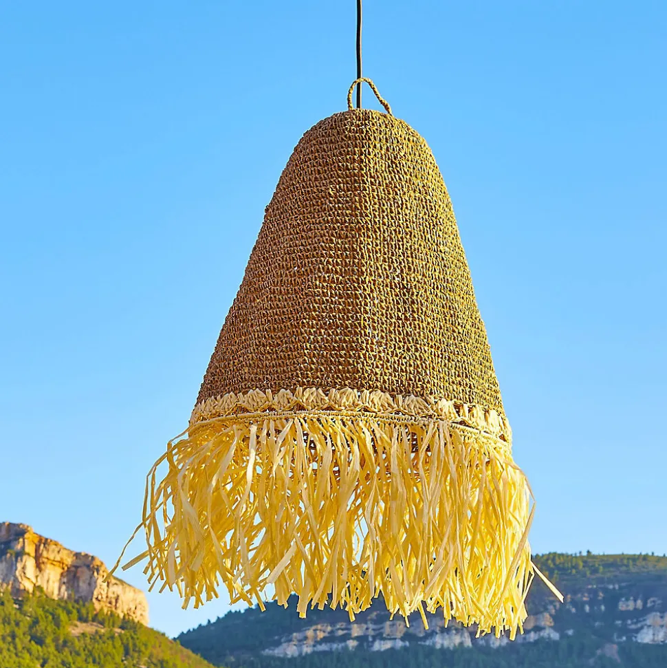ABAT-JOUR EN HERBE MARINE : La suspension PALOMA OUTDOOR CABLE, issue de l’artisanat, est fabriquée en herbe marine et en fibre de papier. Ce sont des matériaux résistants, ils sont à la fois souple et rigide, ce qui permet une multitude de formes. Exotique et chaleureuse, elle mettra en lumière un intérieur moderne et va s’adapter parfaitement à un style plus bohème ou vintage grâce à son look ethnique chic. Son tressage unique va sublimer votre espace de vie. Dimensions : Diamètre 40 x 45 cm de Hauteur. CÂBLE AVEC DOUILLE E27 : La suspension PALOMA OUTDOOR CABLE est équipée d’un câble pour l’extérieur d’une longueur confortable de 5 mètres. Suspendez-la sur une branche d’arbre, sous un parasol ou encore une pergola, pour créer une ambiance lumineuse chaleureuse sur votre terrasse ou dans votre jardin. Branchement sur secteur 220-240V. UTILISATION EXTÉRIEUR : La suspension PALOMA OUTDOOR CABLE est conçue pour une utilisation en extérieur grâce à son indice de protection IP64 qui lui permet d’être protégée contre les projections d’eau de toutes directions. Pour maintenir l’abat-jour en bon état, il est préconisé de le suspendre dans un endroit sec, à l’abri de l’humidité et de la pluie.