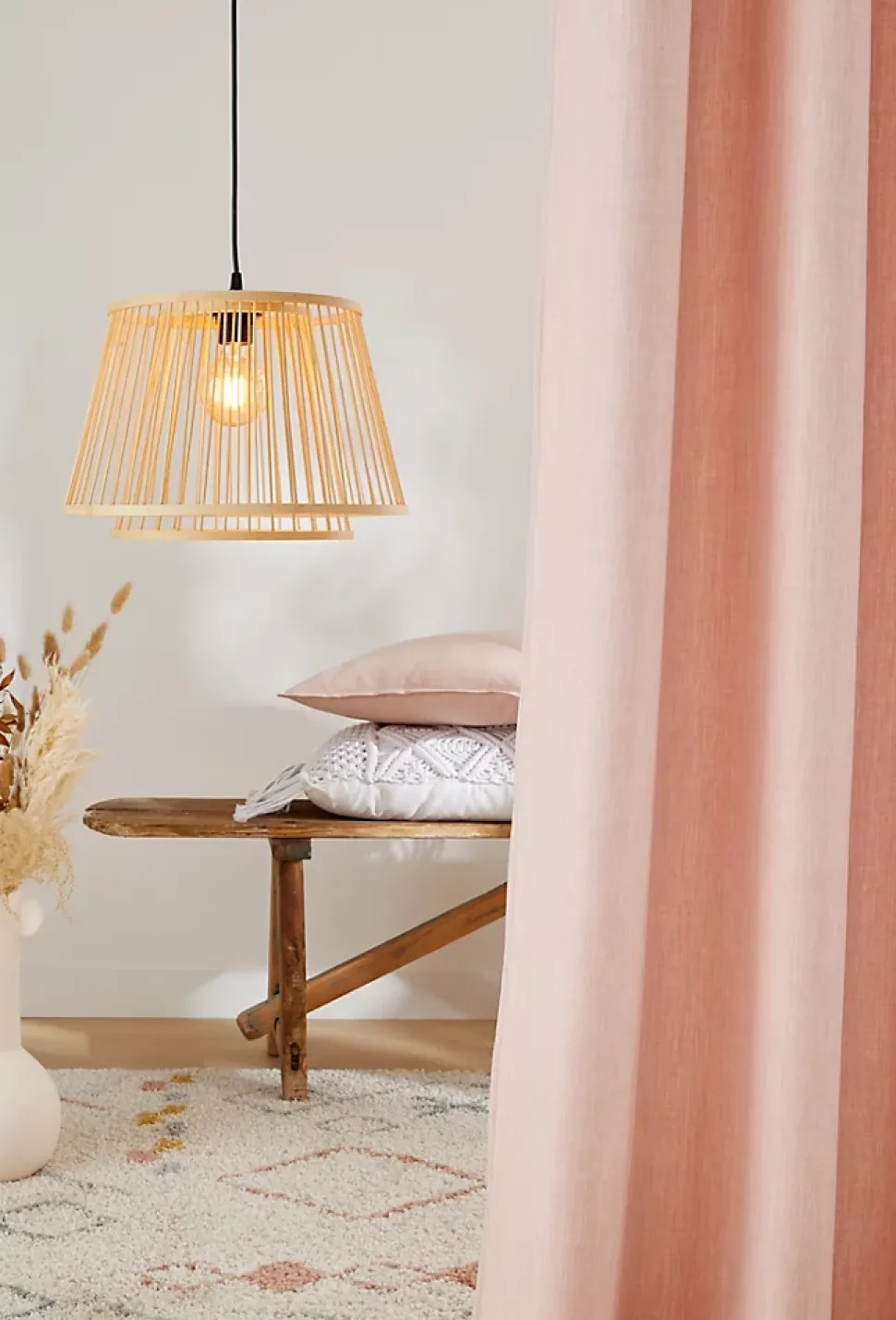- Une fois allumée, un jeu de lumière se crée au plafond et change l’atmosphère de votre pièce. Cette suspension s’intègre parfaitement à la tendance nature et bohème et diffuse une ambiance agréable grâce à ses matériaux naturels.