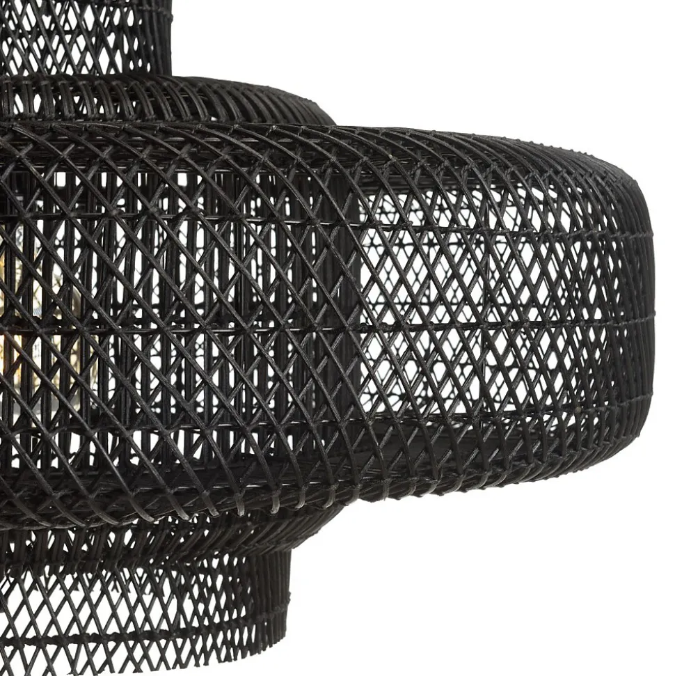 Suspension ‘double’ 90x90cm en rotin couleur noire et teck. Article en Rotin/Teck recyclé/Acier. Dimension 90 x 90 x 52 cm.