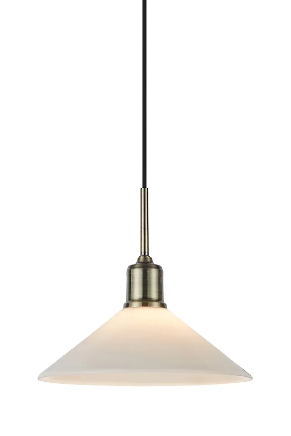 Un éclairage raffiné au charme intemporelLa suspension Vela de Markslöjd allie avec grâce un abat-jour en verre opale blanc brillant à un support en laiton antique, créant une pièce à la fois élégante et chaleureuse. Parfaite comme lampe de chevet suspendue ou pour illuminer une cuisine avec style, elle apporte une lumière douce et enveloppante à votre intérieur.Son design classique séduit par sa simplicité sophistiquée, offrant un équilibre parfait entre fonctionnalité et esthétisme. Avec son long câble textile noir de 3,5 mètres et son interrupteur intégré, cette suspension vous permet de jouer librement avec la hauteur et l’ambiance lumineuse.Un choix sûr pour un éclairage d’ambiance de qualitéCompatible avec une ampoule E27 jusqu’à 40 W (non fournie), cette suspension est adaptée à un usage intérieur (IP20). Son câble textile apporte une touche de modernité et de texture, tandis que le système de fixation à 3 trous assure une installation solide et durable.Offrez-vous un éclairage raffiné et fonctionnel qui sublime votre espace tout en créant une atmosphère accueillante. La suspension Vela, c’est le détail déco qui fait toute la différence !