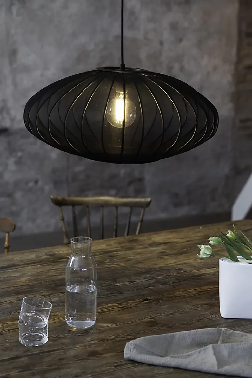 Un style sobre et chic pour sublimer votre intérieurLa Suspension Florence noire 60 cm de Markslöjd séduit par son grand format ovale et son abat-jour en tissu noir. Elle diffuse une lumière douce et tamisée, parfaite pour créer une ambiance cosy dans le salon ou la chambre.Design généreux et moderneAvec ses 60 cm de diamètre et 26 cm de hauteur, cette suspension s’impose avec élégance tout en restant discrète. Sa forme ovale permet une diffusion homogène de la lumière, et elle s’harmonise parfaitement avec d’autres luminaires de la collection Florence.Installation pratique et finitions élégantesDotée d’un câble textile noir de 190 cm et d’une coupelle assortie, la suspension se fixe facilement par crochet. Compatible avec une ampoule E27 (non incluse) jusqu’à 40 W ou LED équivalente. Indice de protection IP20, classe I : idéale pour un usage en intérieur.