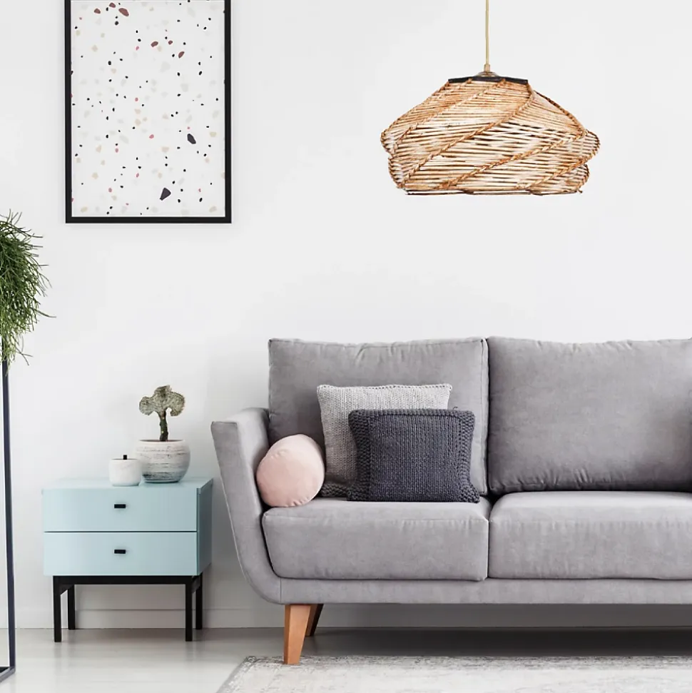 La suspension effet osier est un luminaire au design naturel et chaleureux, imitant l’apparence du rotin ou de l’osier tressé. Son look artisanal apporte une touche bohème et authentique à n’importe quel espace. Ce type de suspension est idéal pour créer une ambiance douce et accueillante dans des pièces comme le salon, la chambre ou la salle à manger. Le tressage délicat du matériau permet à la lumière de se diffuser de manière douce et filtrée, créant des jeux d’ombres subtiles et une atmosphère apaisante. Cette suspension s’intègre parfaitement dans des intérieurs au style naturel, scandinave ou rustique. Caractéristiques techniques Couleur principale : CamelMatière : Bois Finitions : CamelCapuchon de lampe : BoisPuissance : 45-60 W maximumType d’usage : IntérieurAmpoule incluse : Non EntretienNettoyage facile à l’aide d’un chiffon humide ou secDimensions Dimensions totales : 36 x 36 x 18 cmPoids total : 2 kgConditionnement Le produit est conditionné dans un colis de : 41 x 40 x 22 cm/ 2 kgMontage facile une notice est fournie.